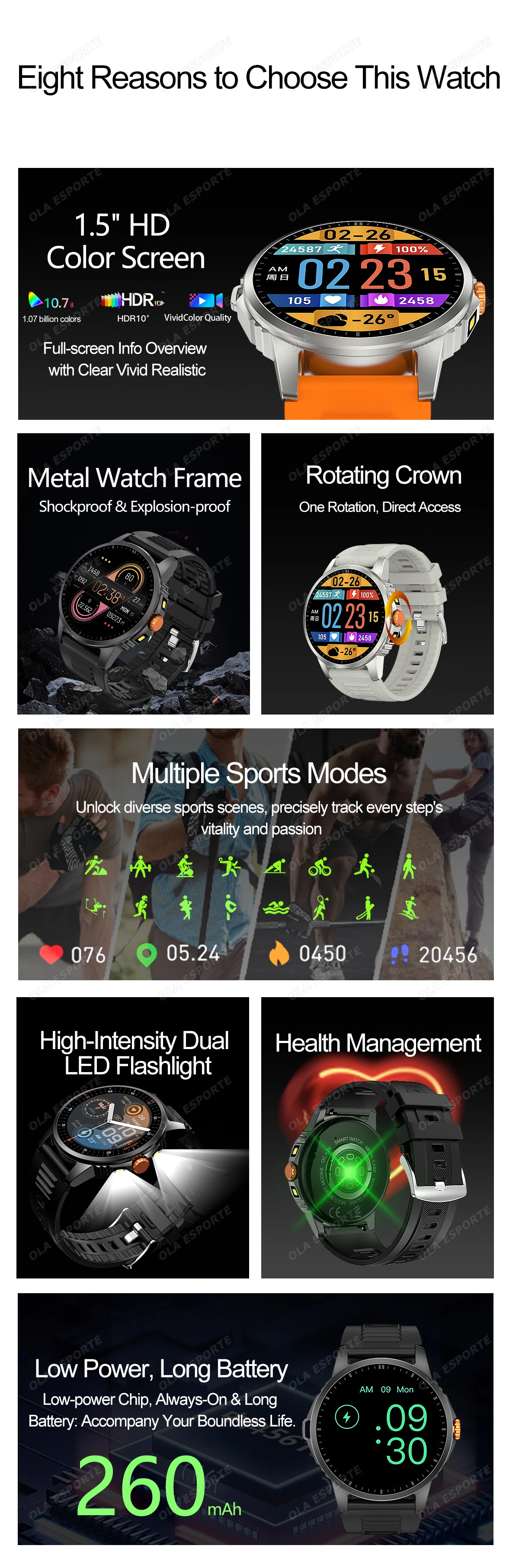 New GPS Sport Smart Watch for Men Women Outdoor Flashlight Bluetooth Call Watch Multiple Sport Modes