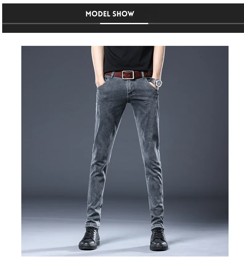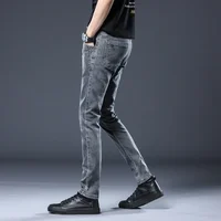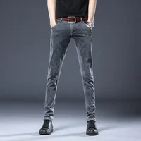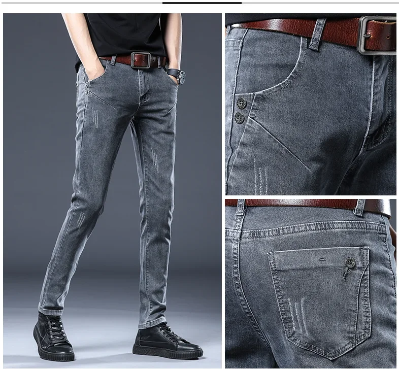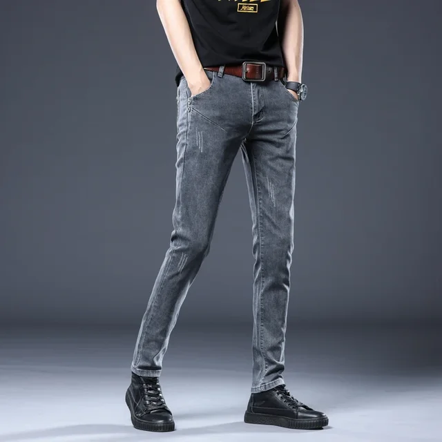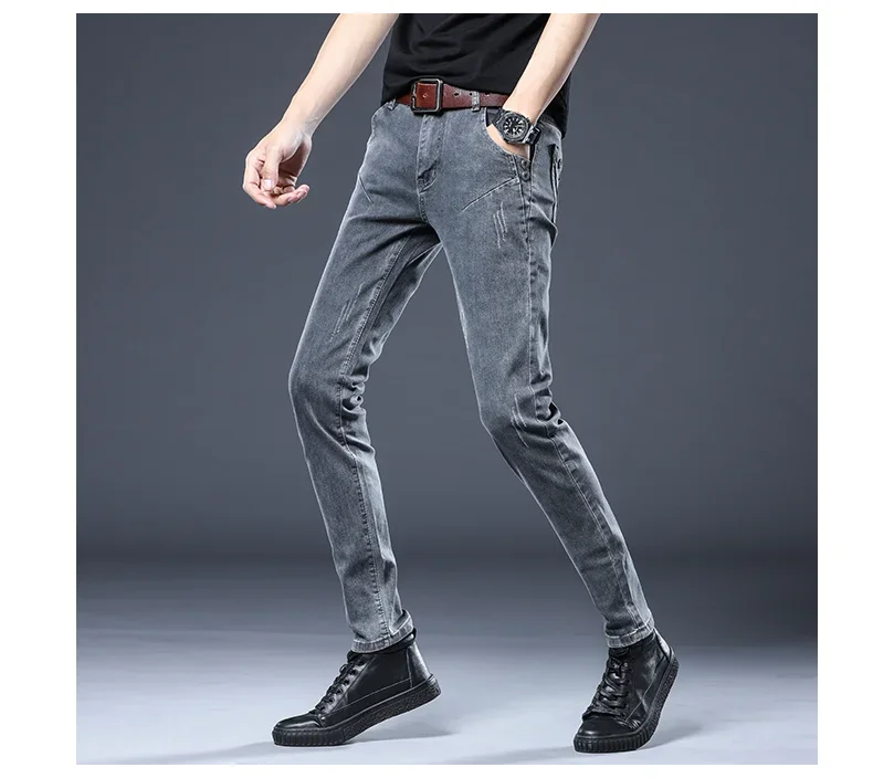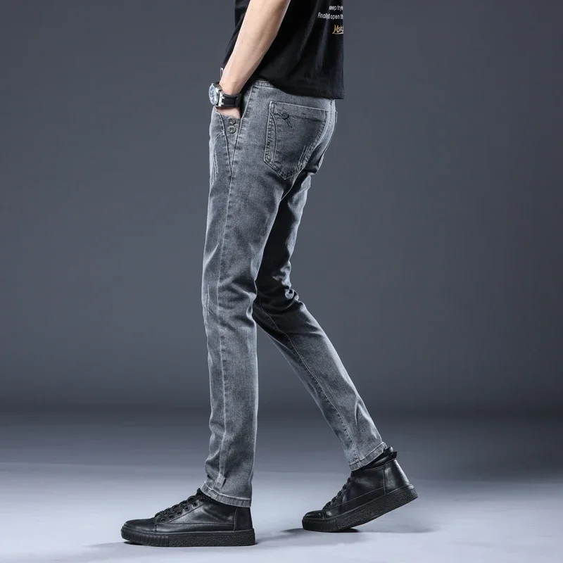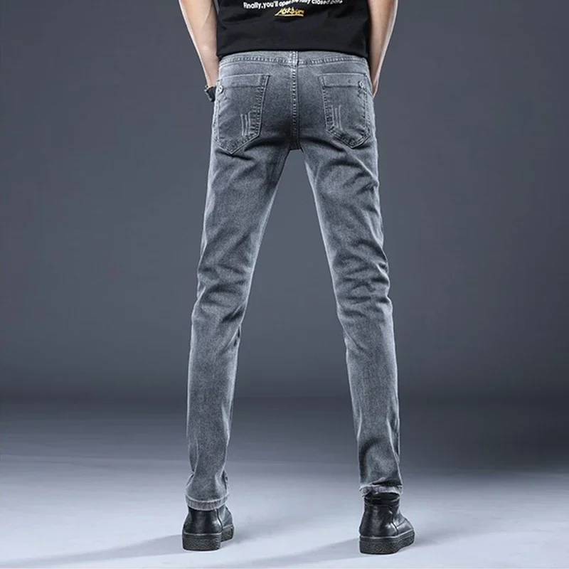 New Gray Skinny Jeans Men's Slim Elastic Korean Fashion Vintage Casual Feet Male Clothing Denim Trousers 27-36
