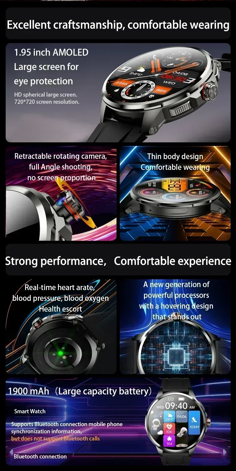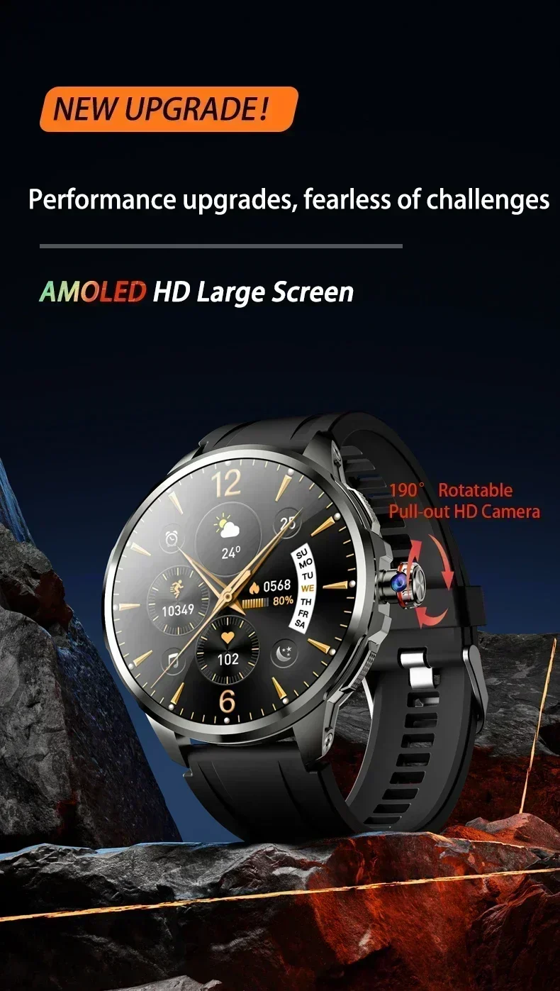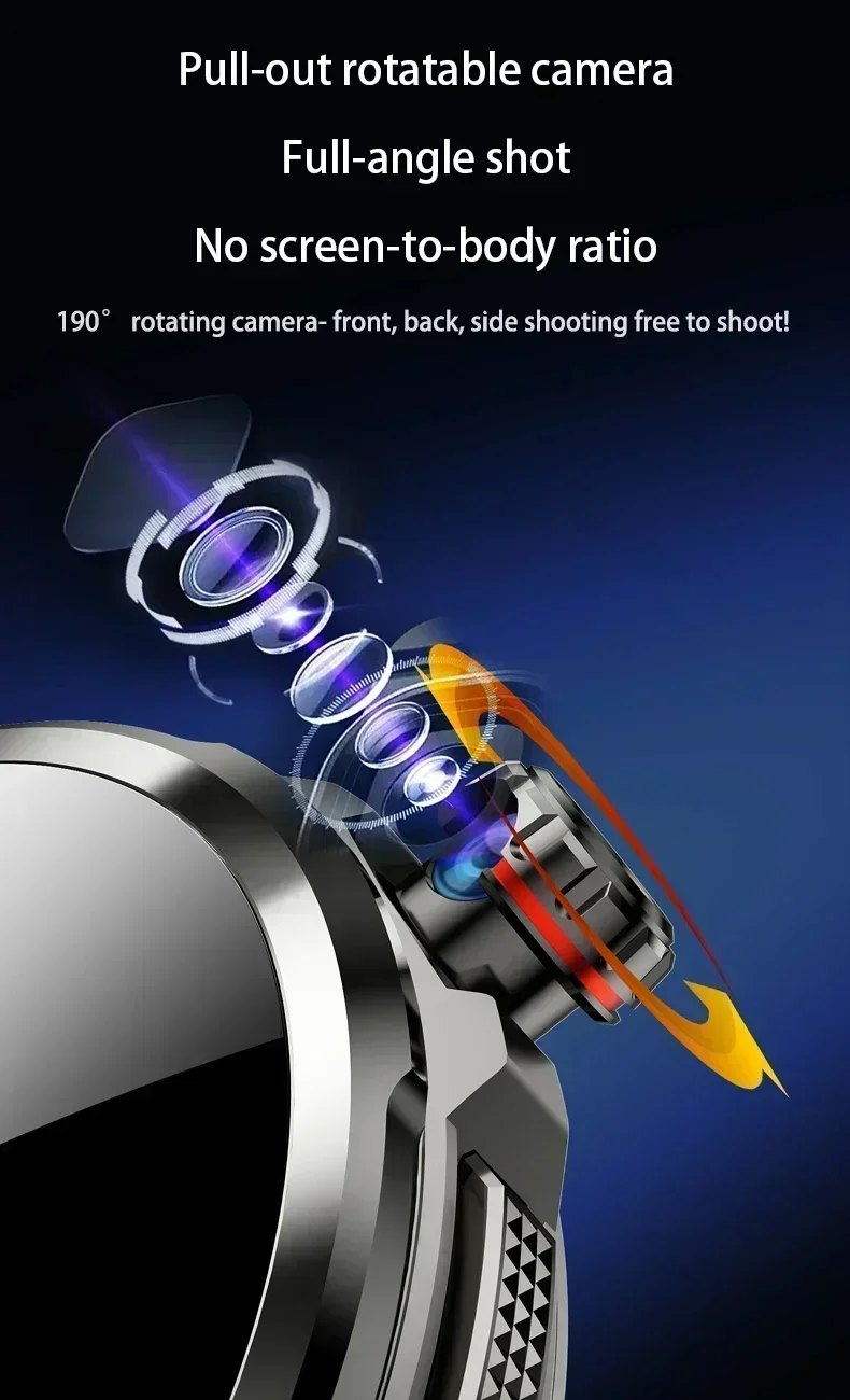 4. 1.95 inch large Amoled screen with a resolution of 720*720, 900W HD Pull and rotate camera;