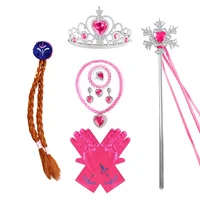 New Halloween Party Cosplay Costume Accessories Girls Anna Elsa Wig Braid Princess Crown Gloves Magic Wand Necklace Jewelry Set