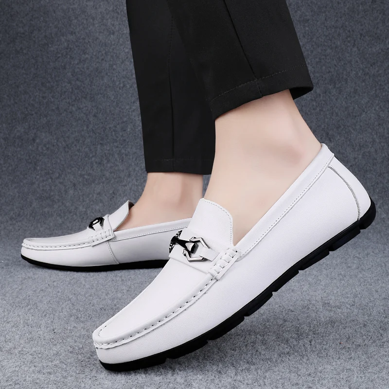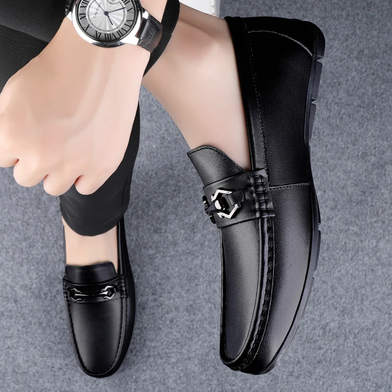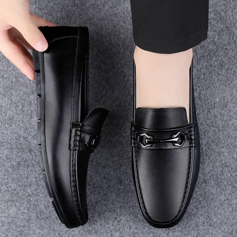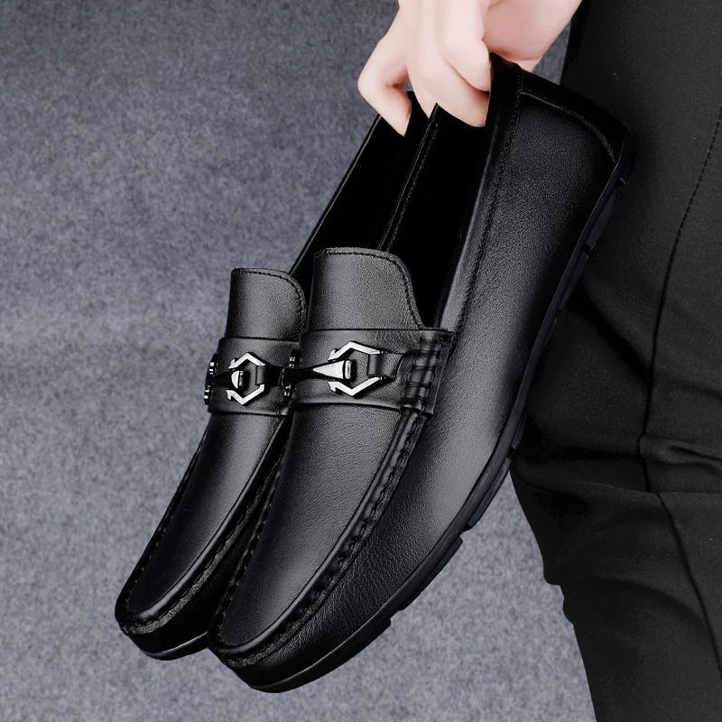 New Handmade Genuine Leathe Men Casual Shoes Comfortable Mens Loafers Slip on Flats Hot Sale Outdoor Walking Shoes Man Moccasins