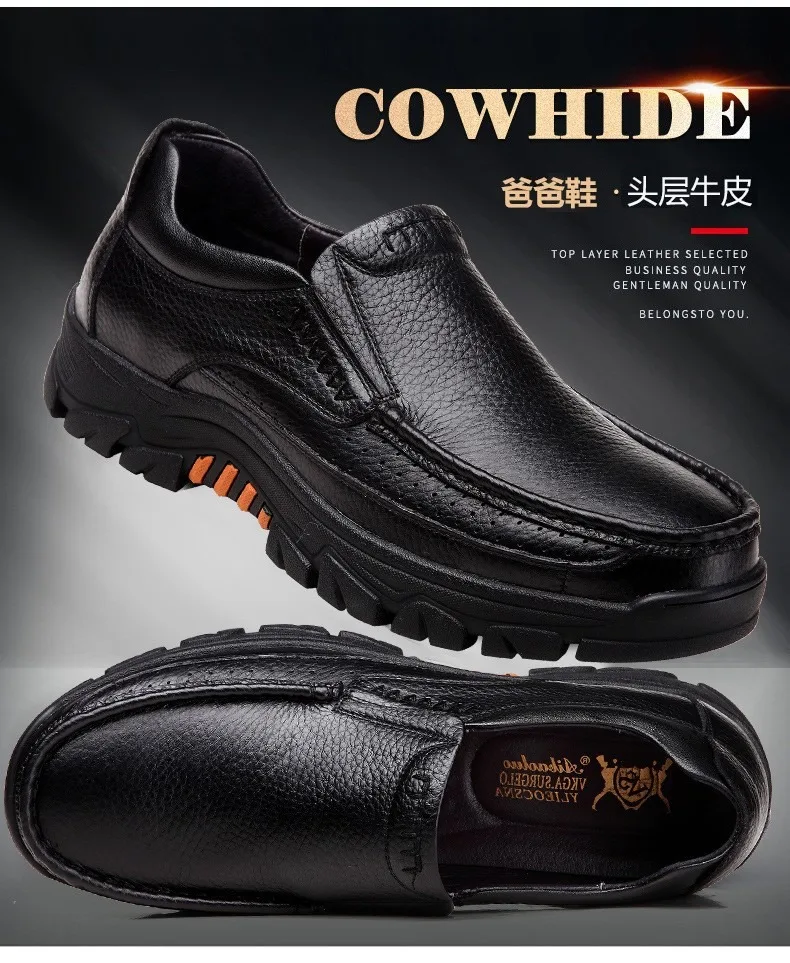 New Handmade Genuine Leather Shoes Men Loafers Soft Cow Leather Men Thick Sole Casual Shoes Male Footwear