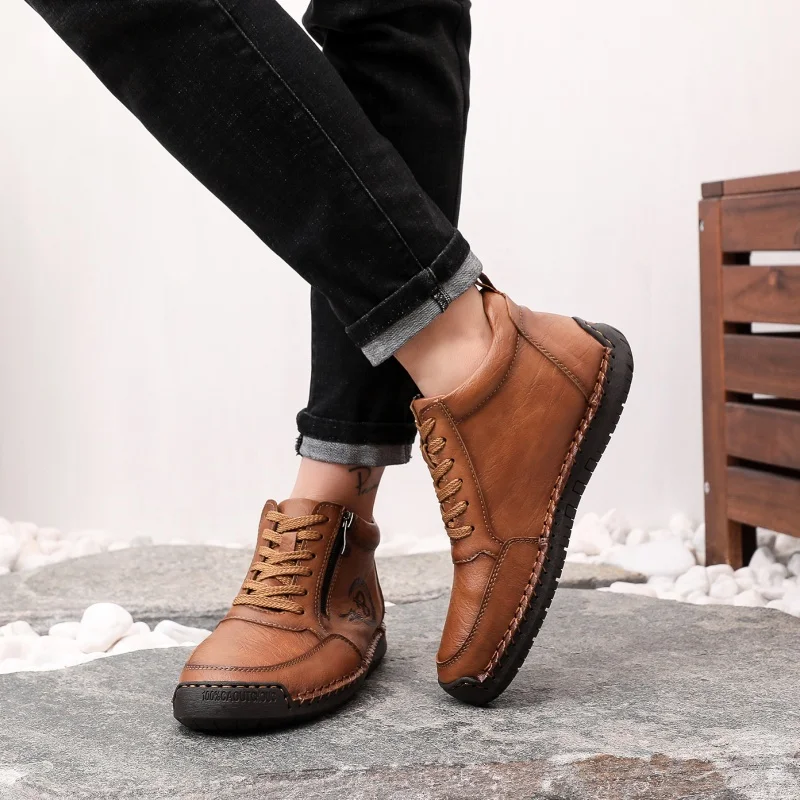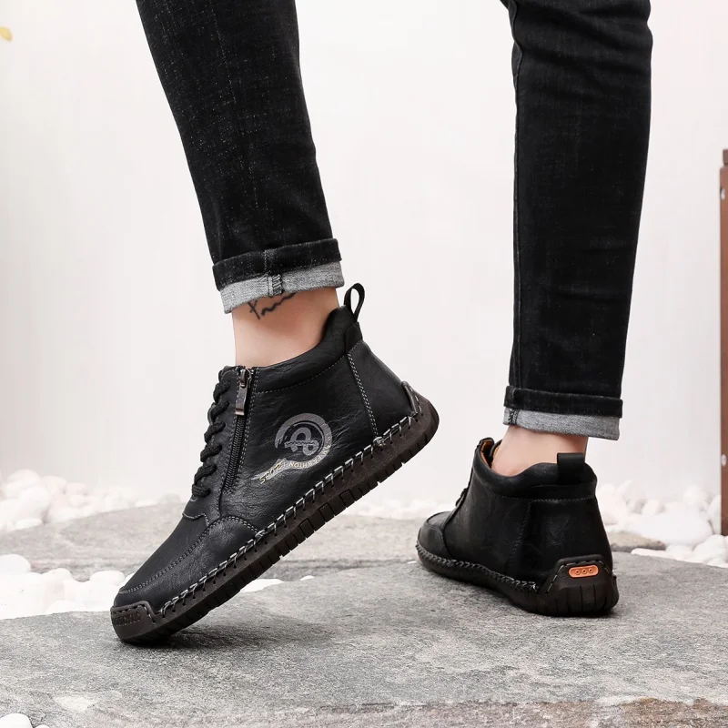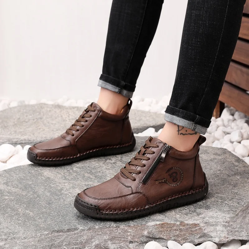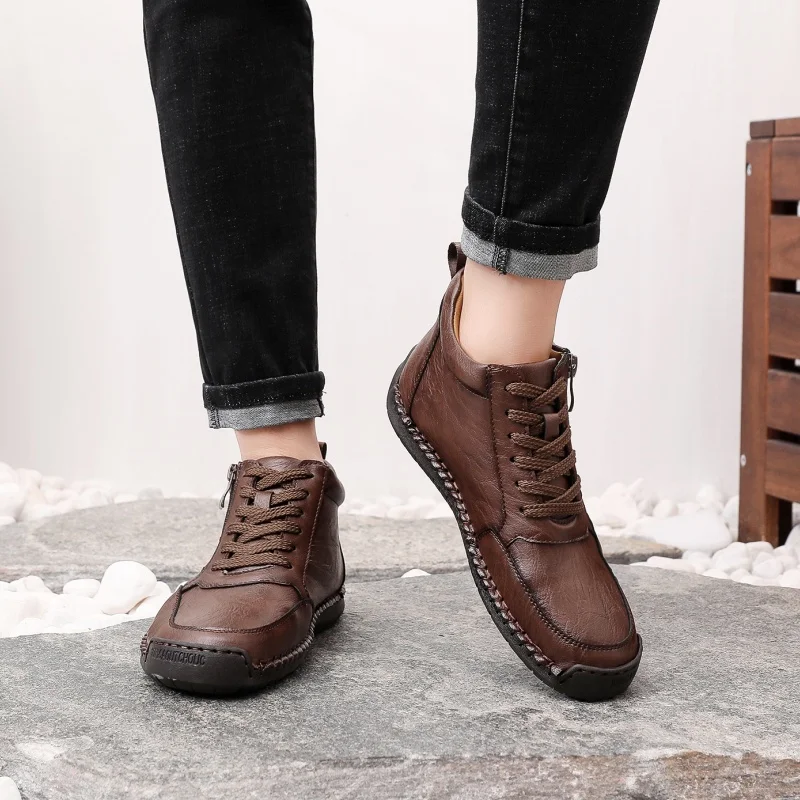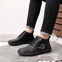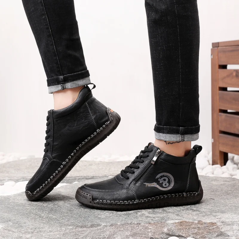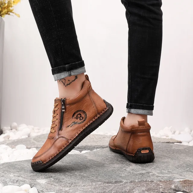 Classic Men Leather Casual Shoes Winter Warm Man Ankle Boots Outdoor Lightweight Handmade Walking Sneakers Comfort Work Boots