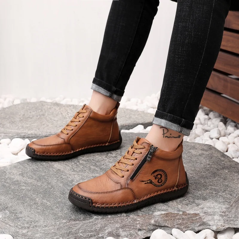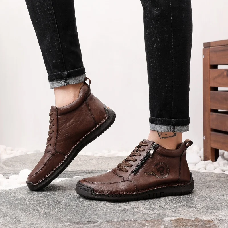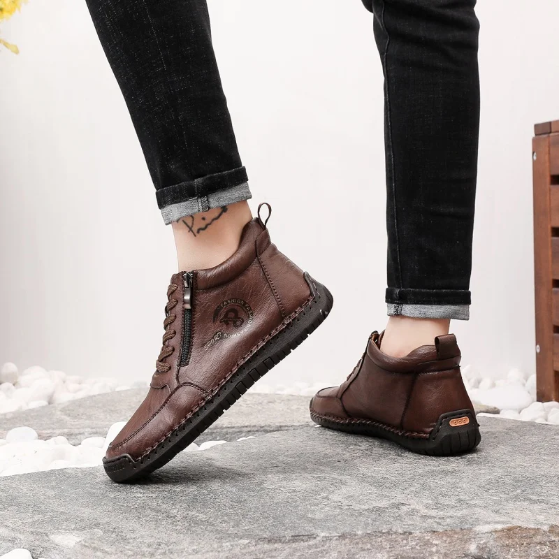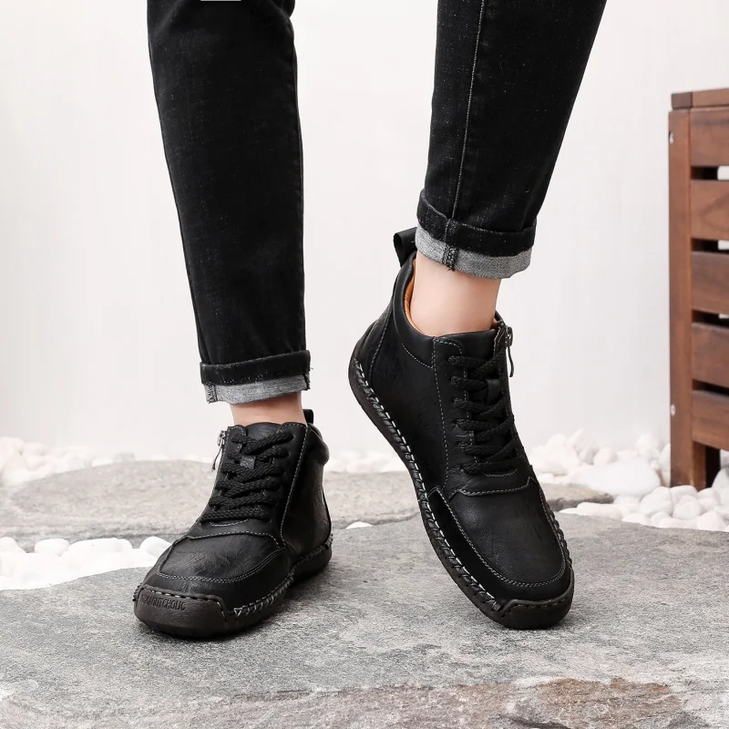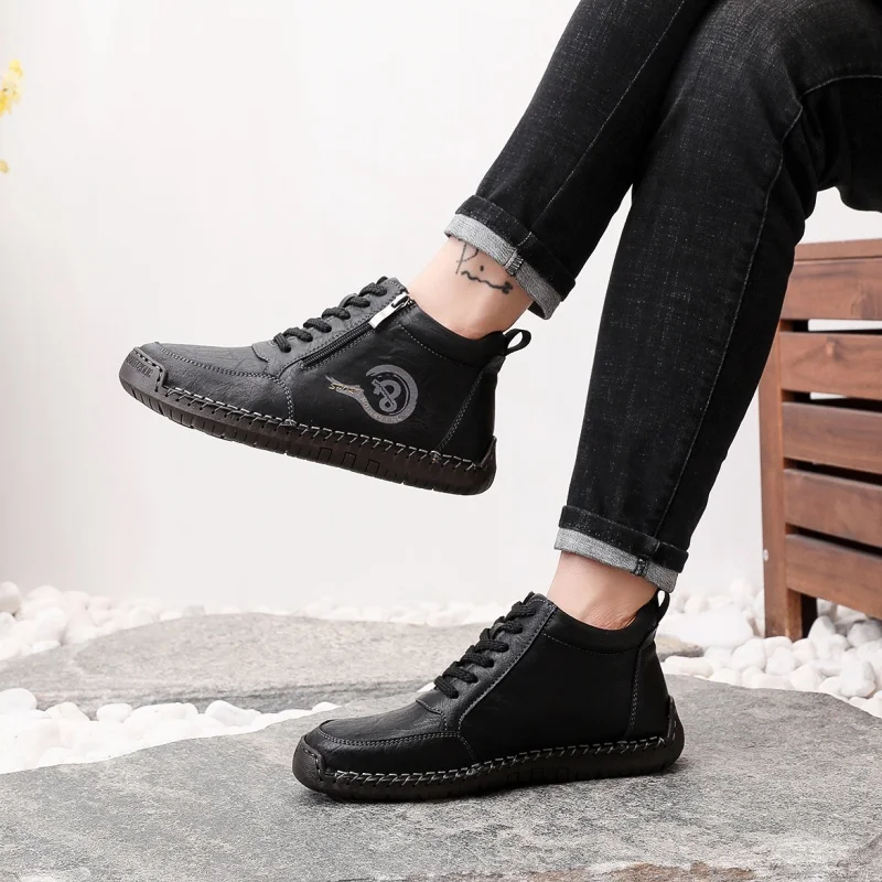 Classic Men Leather Casual Shoes Winter Warm Man Ankle Boots Outdoor Lightweight Handmade Walking Sneakers Comfort Work Boots