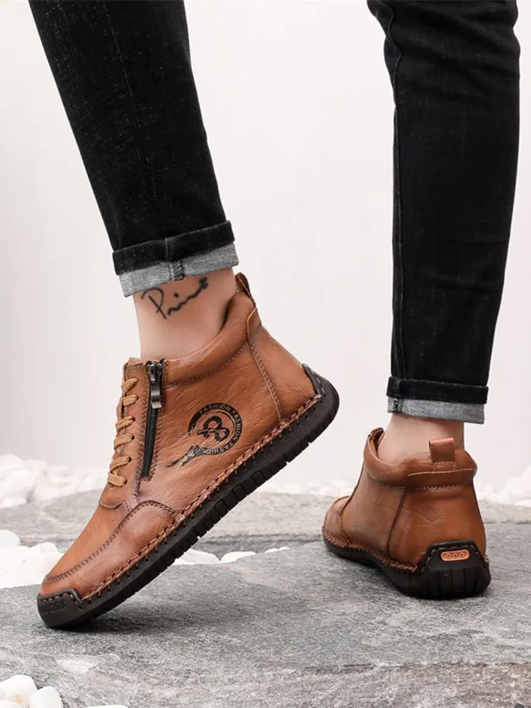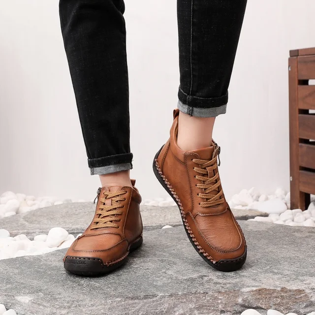 New Handmade Leather Casual Men Shoes Design Sneakers Outdoor Zipper Breathable Men Flats Shoes Fashion