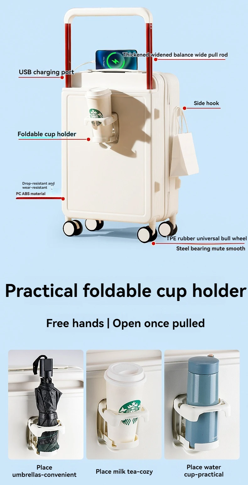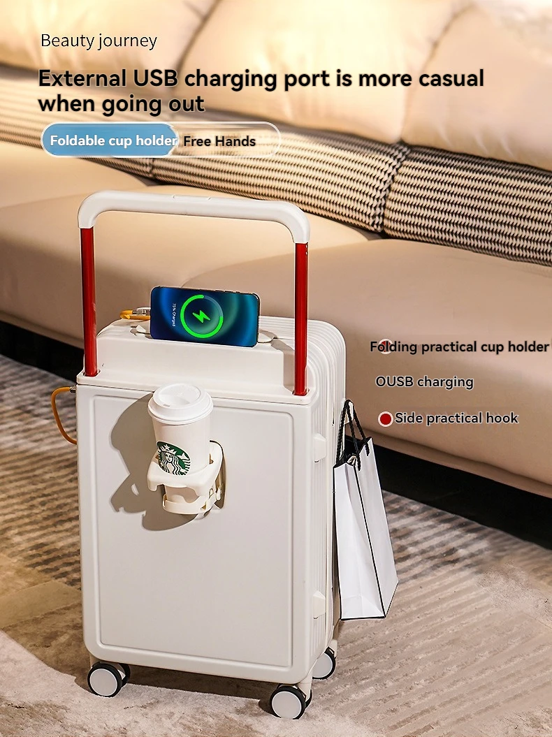 New High Beauty Student 24 inch Luggage with Lightweight Universal Wheels, Silent Multi functional Wide Pull Rod Boarding Travel