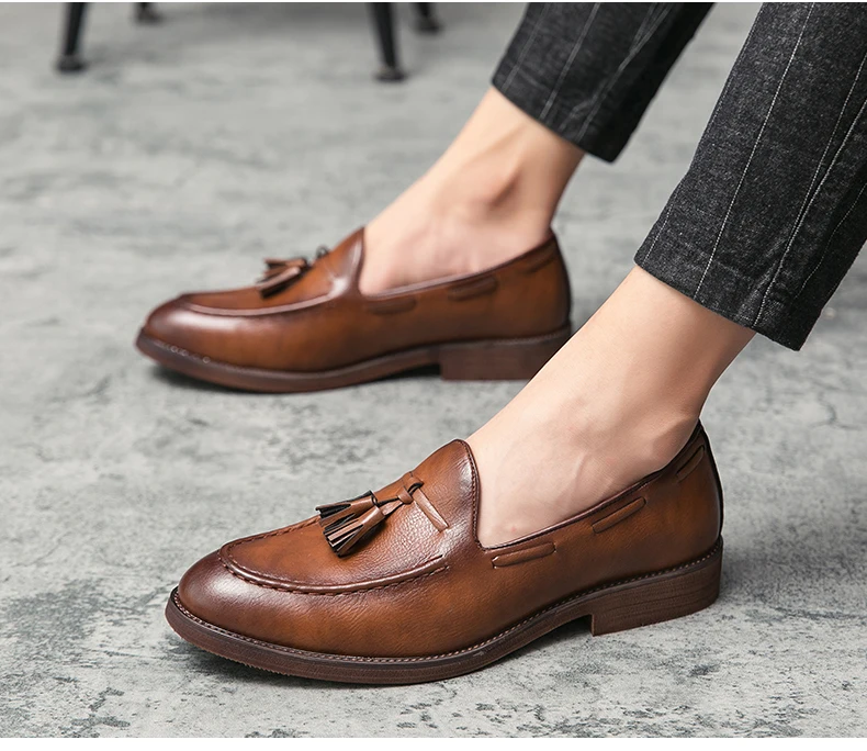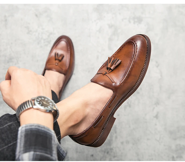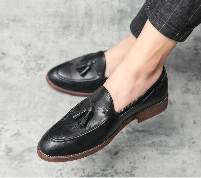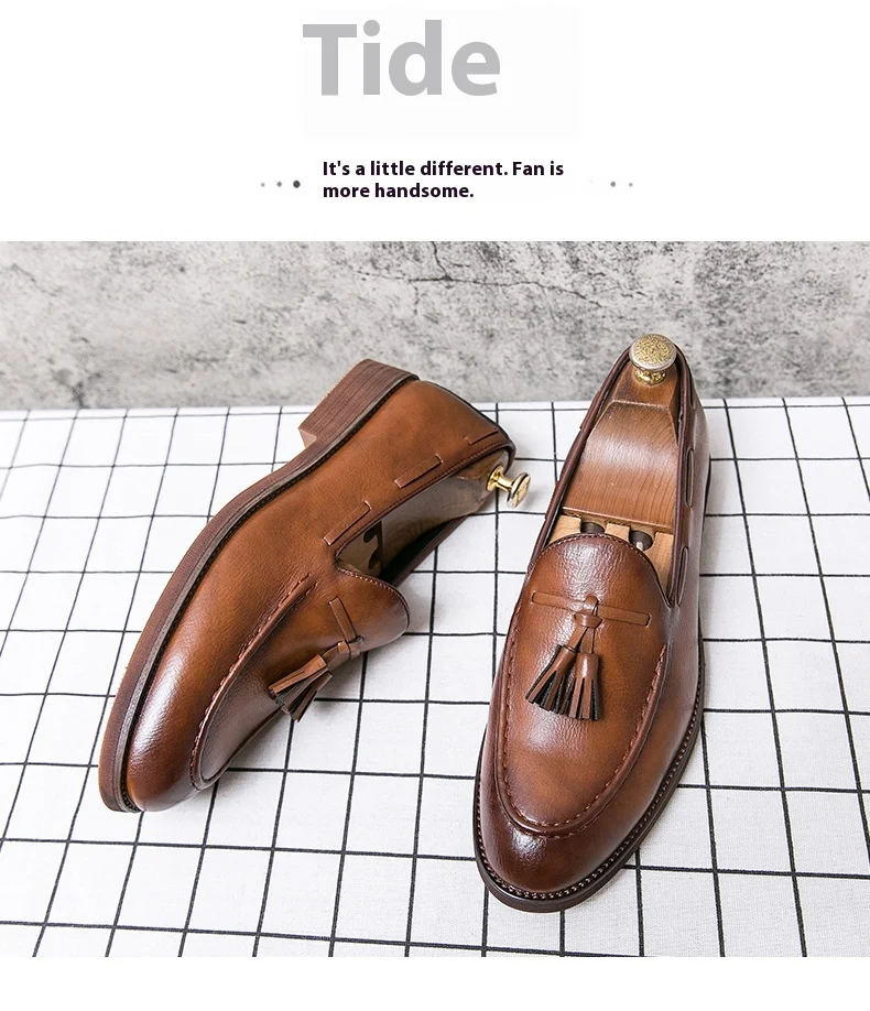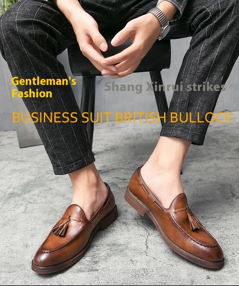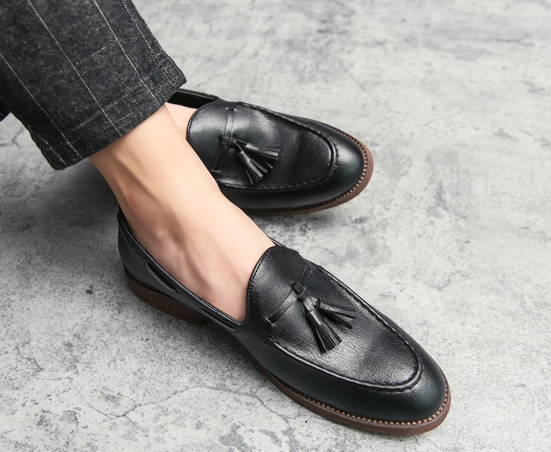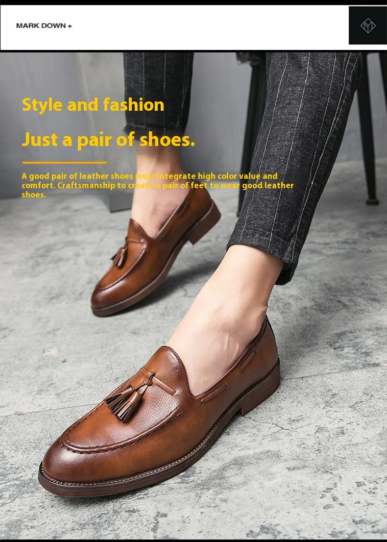 New high quality pointed casual leather shoes men’s wedding shoes Bullock fringe a slip-on beef