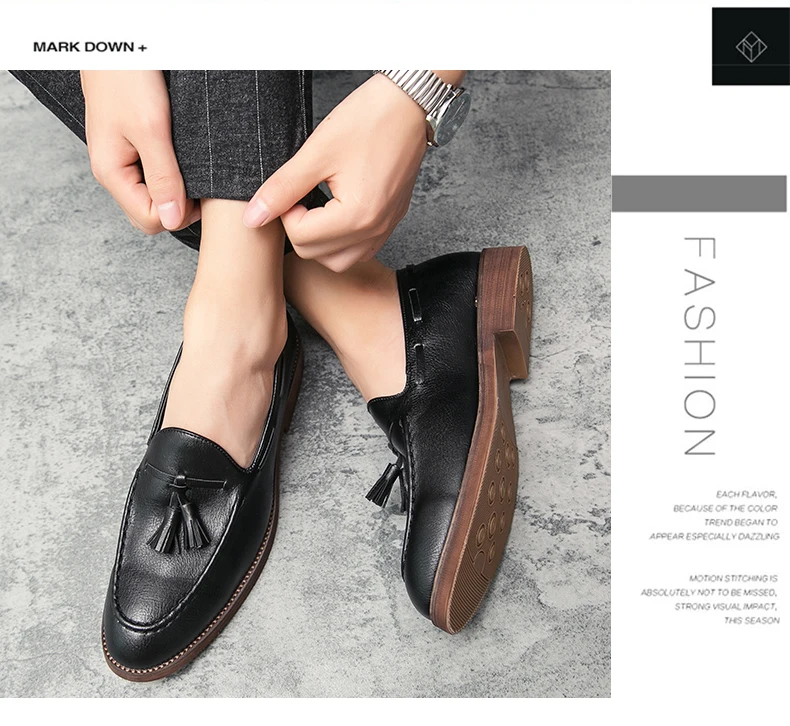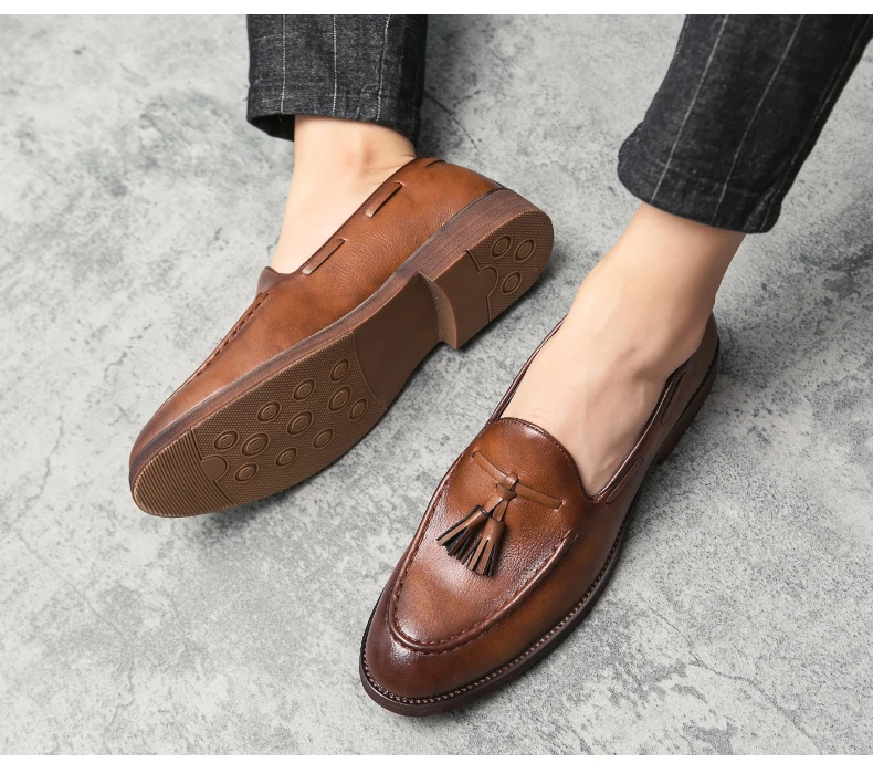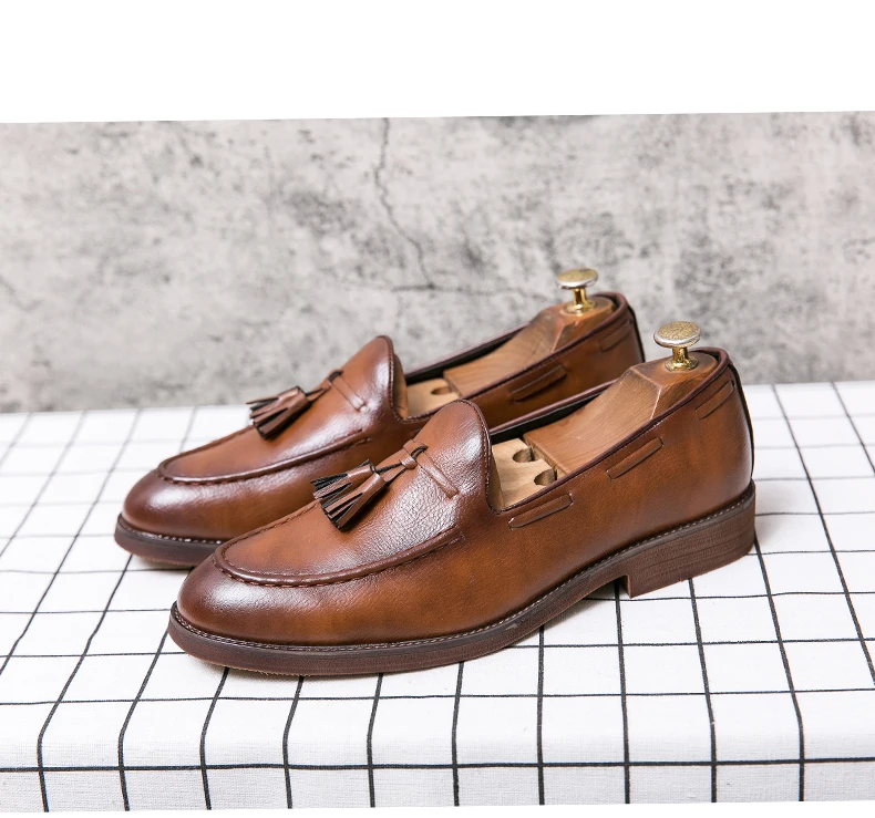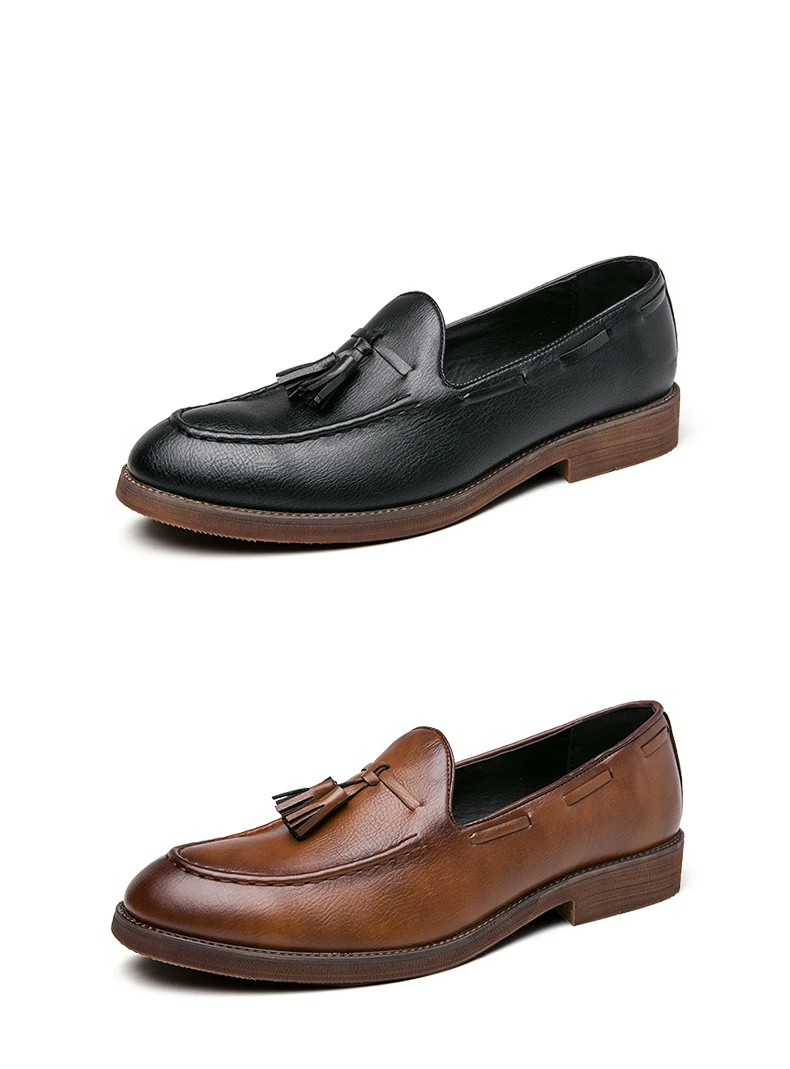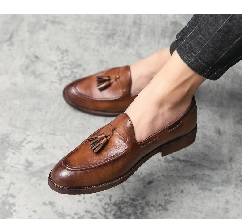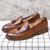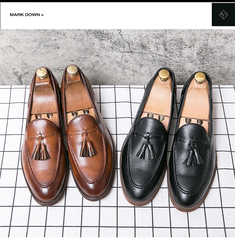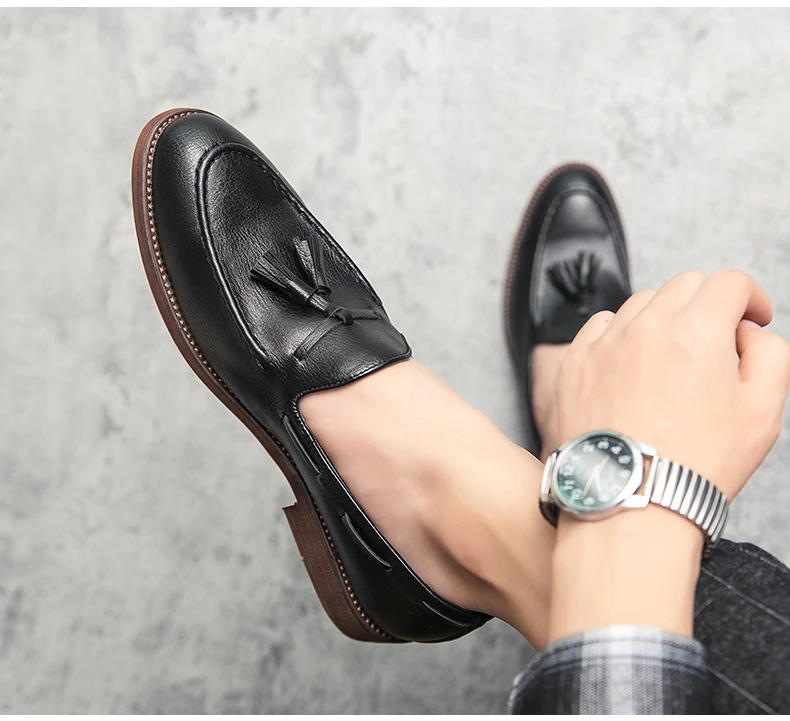 New high quality pointed casual leather shoes men’s wedding shoes Bullock fringe a slip-on beef