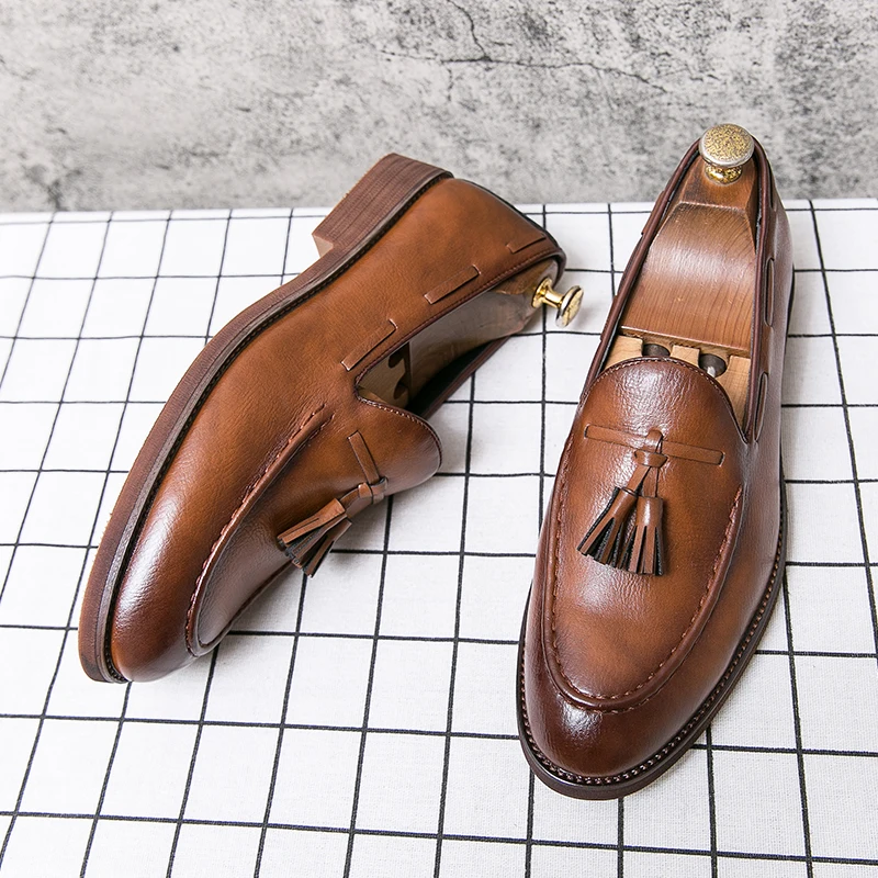 New high quality pointed casual leather shoes men's wedding shoes Bullock fringe a slip-on beef sole stylist fashion shoes