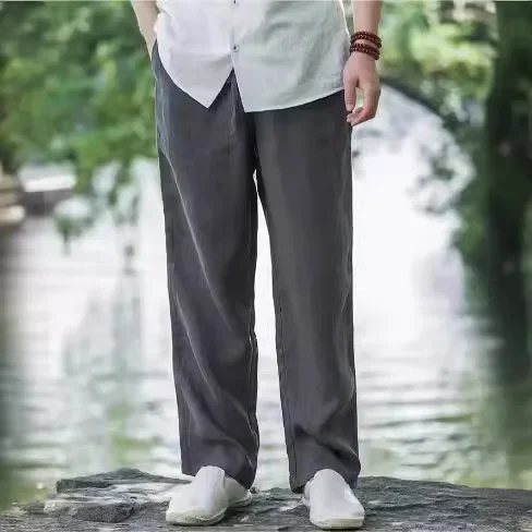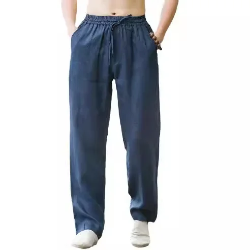 New Hot Sale Of The Season Men's Summer Thin Breathable Cotton Linen Wide Leg Casual Pants Large Size Linen Trousers Comfortable