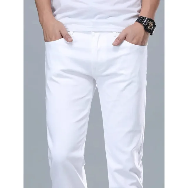 New Hot Sale Of The Season Men’s White Casual Loose Straight Leg Jeans Spring Autumn Pure Long