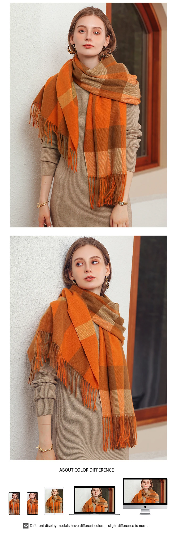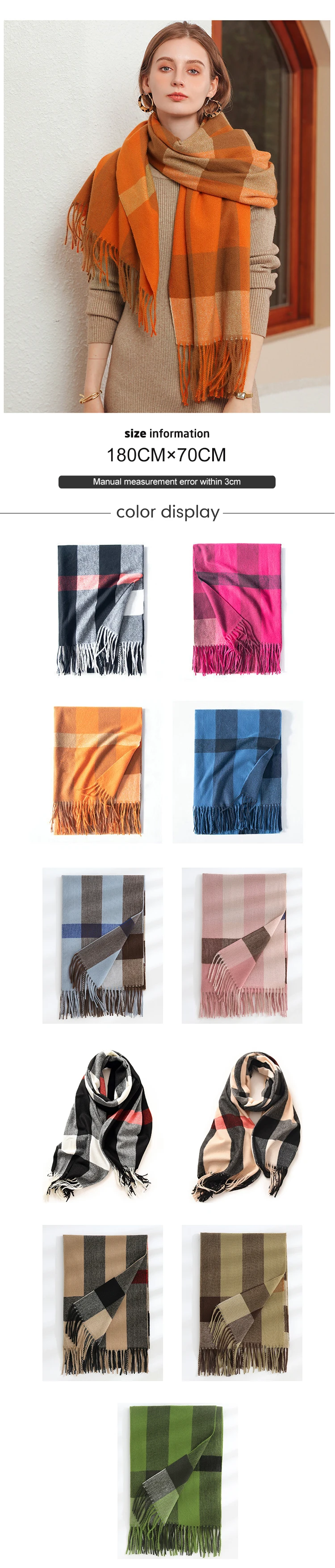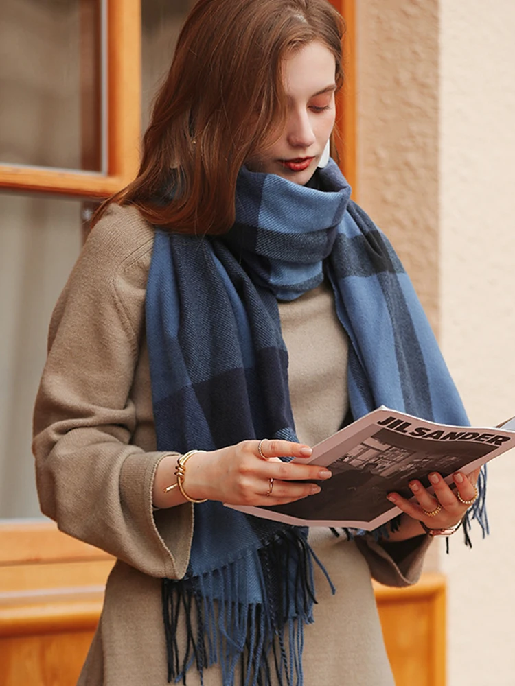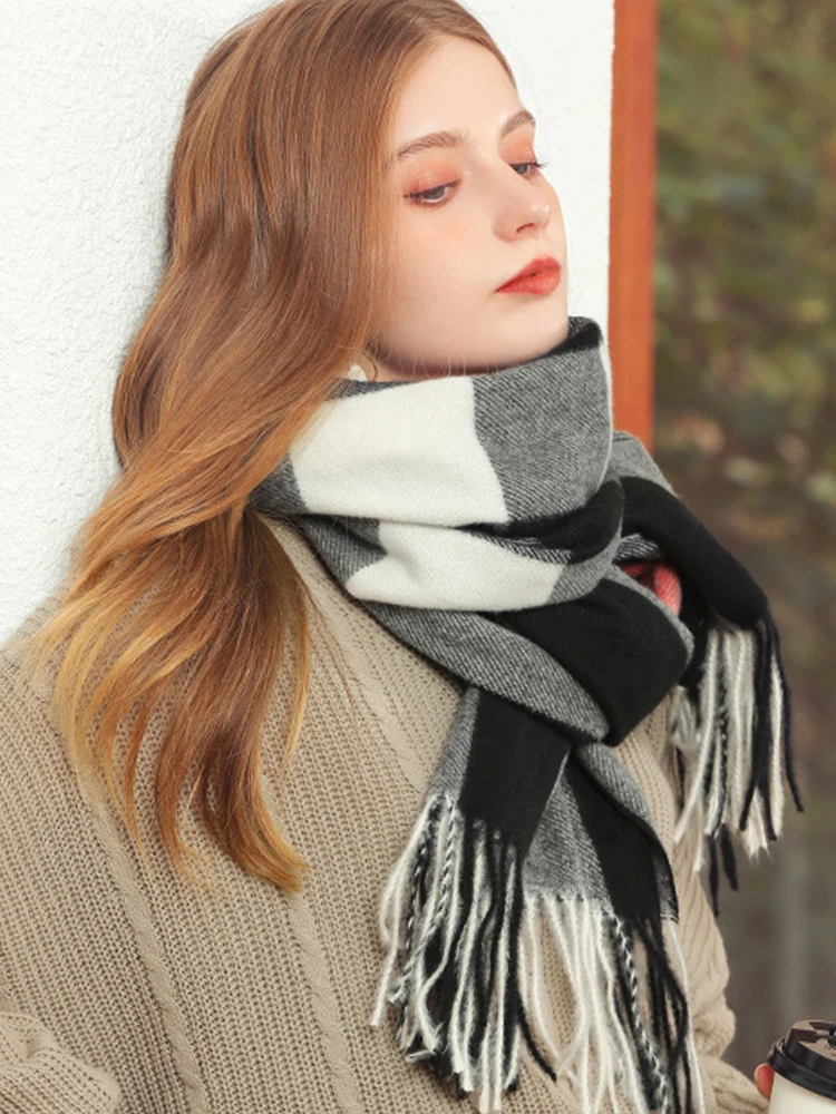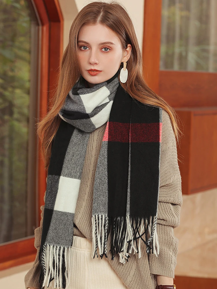 New Imitation Cashmere Women Scarf Winter Preppy Style Plaid Fringed Warm Scarve Pashmina Mujer Femme