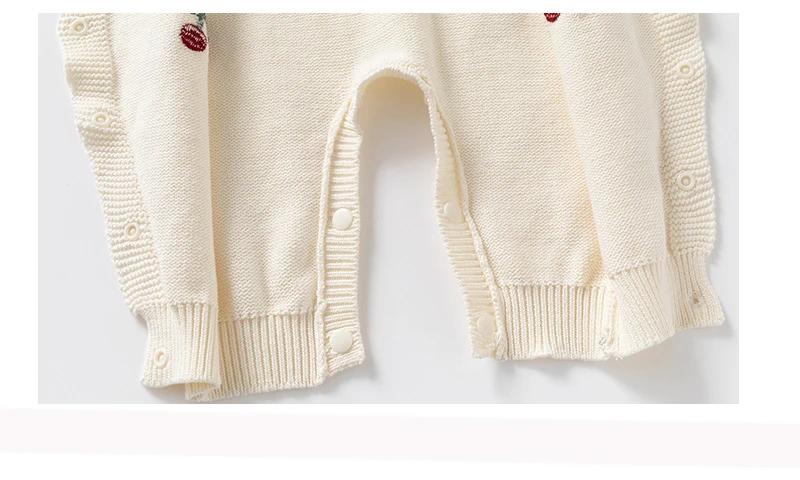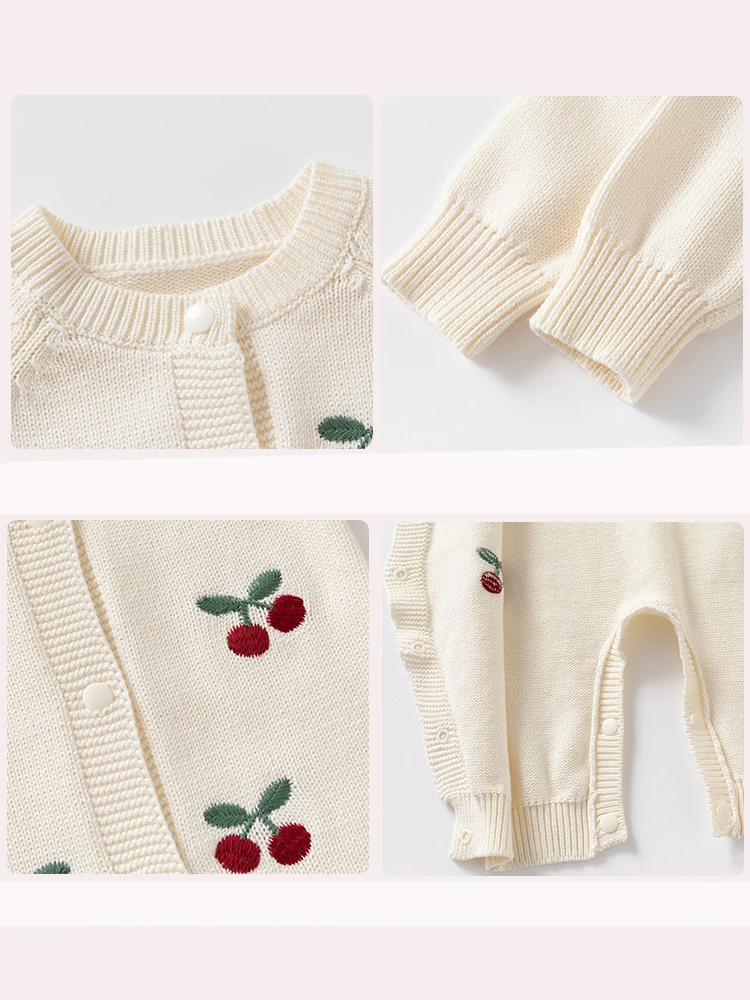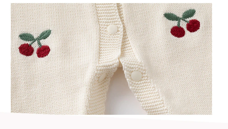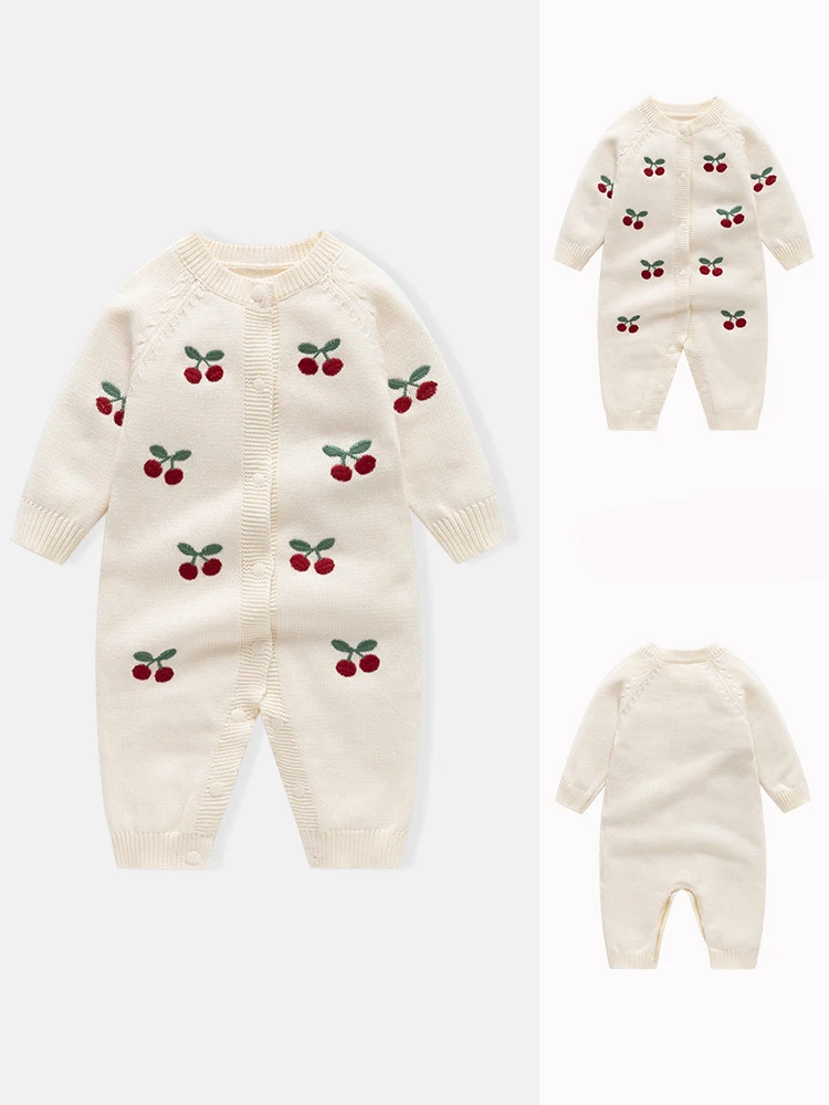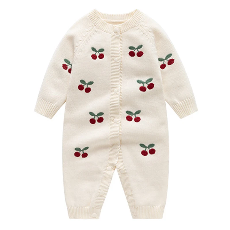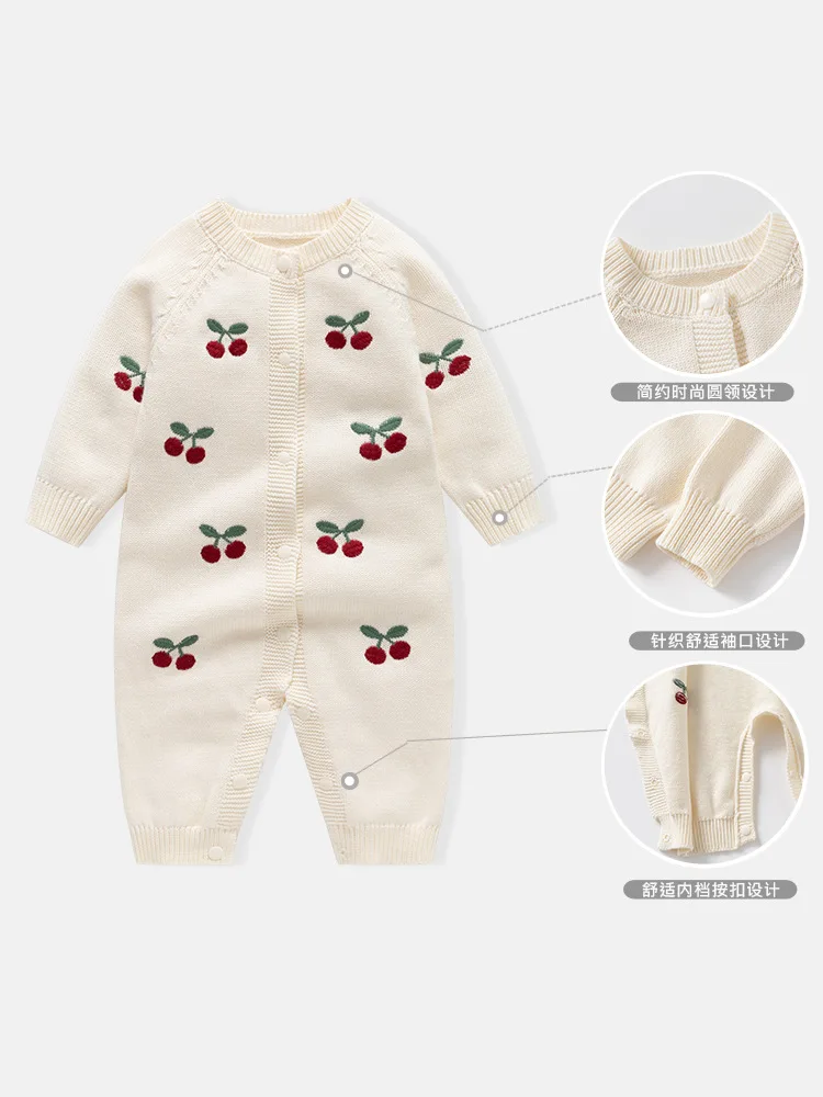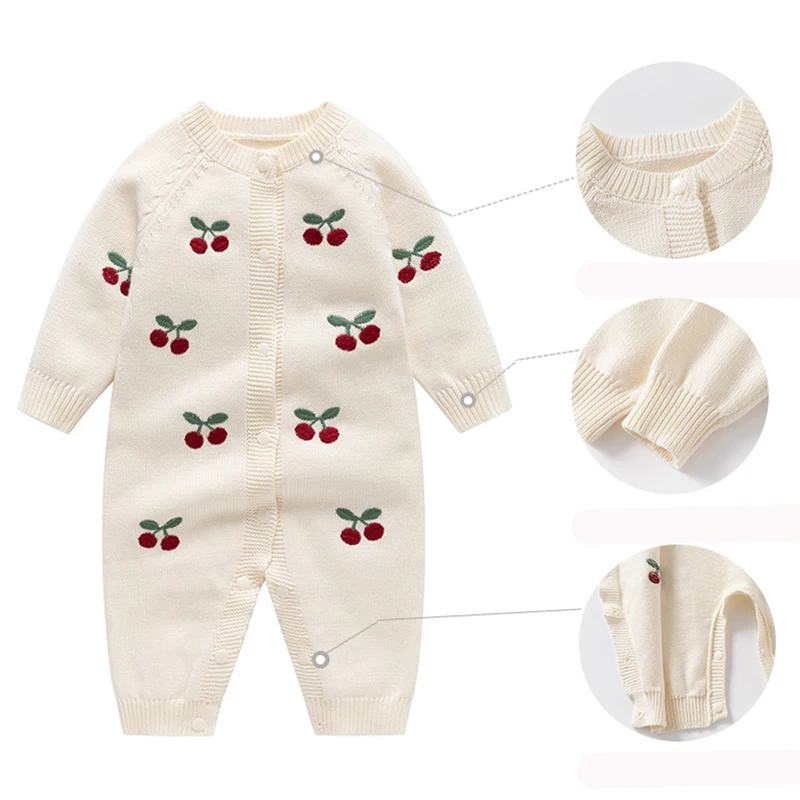 New Infant Baby Girls Boys Knitted Jumpsuit Toddler Baby Girl Boys Romper Cherry Embroidery Knitting
