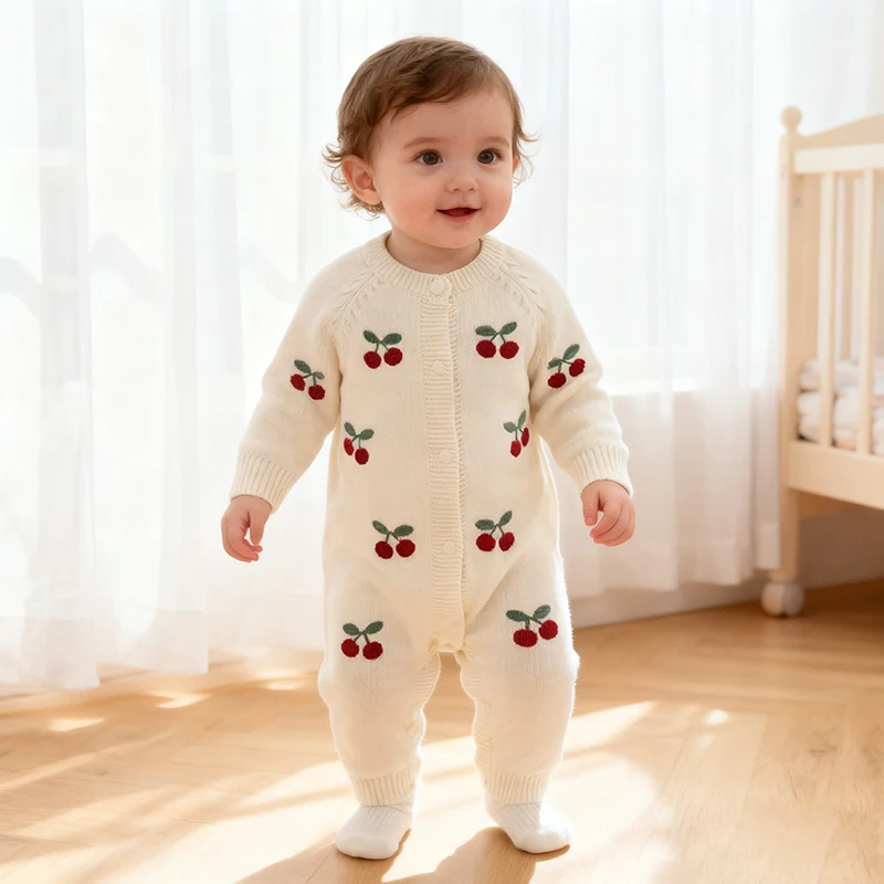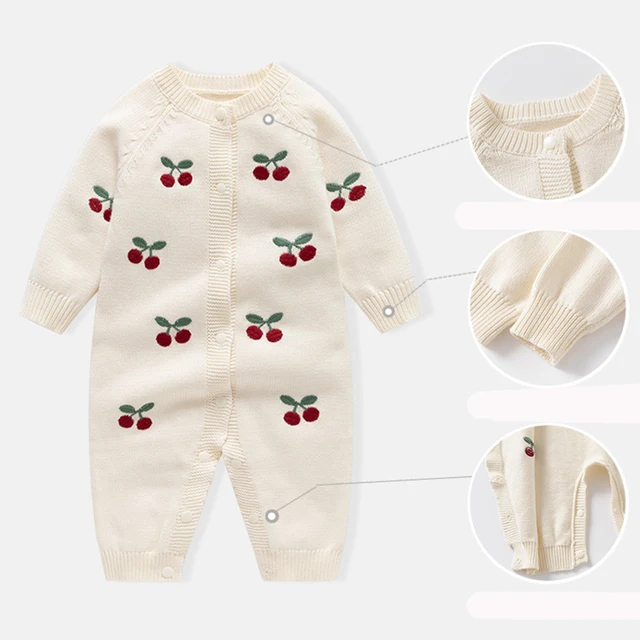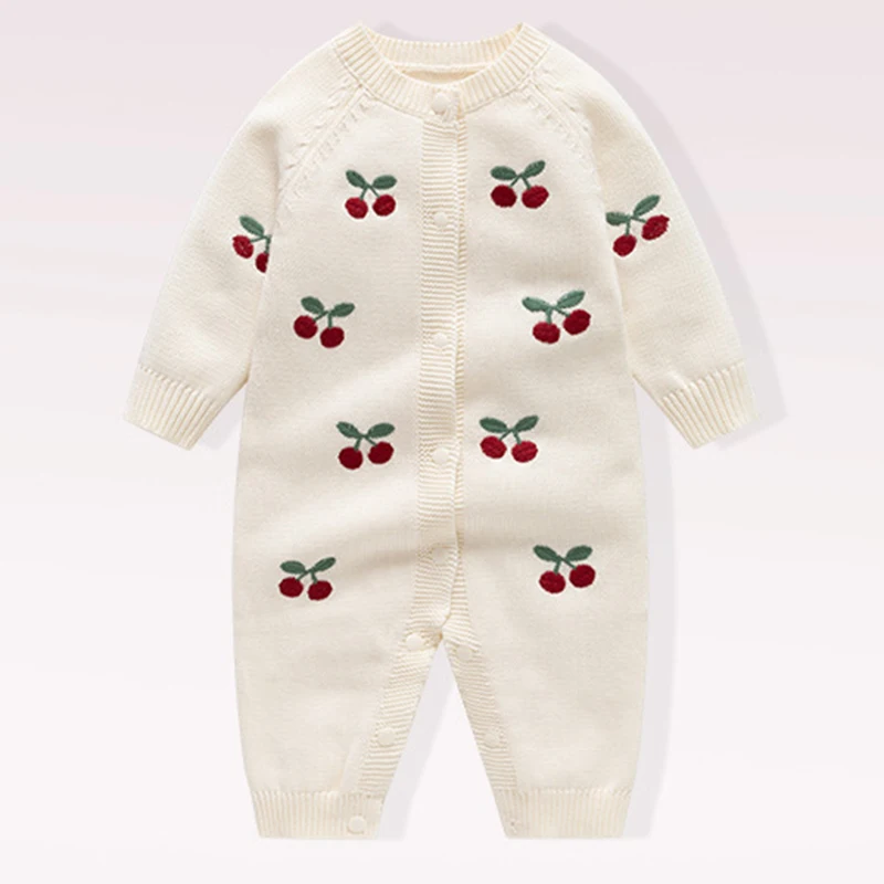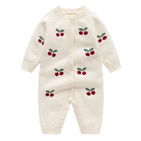 New Infant Baby Girls Boys Knitted Jumpsuit Toddler Baby Girl Boys Romper Cherry Embroidery Knitting