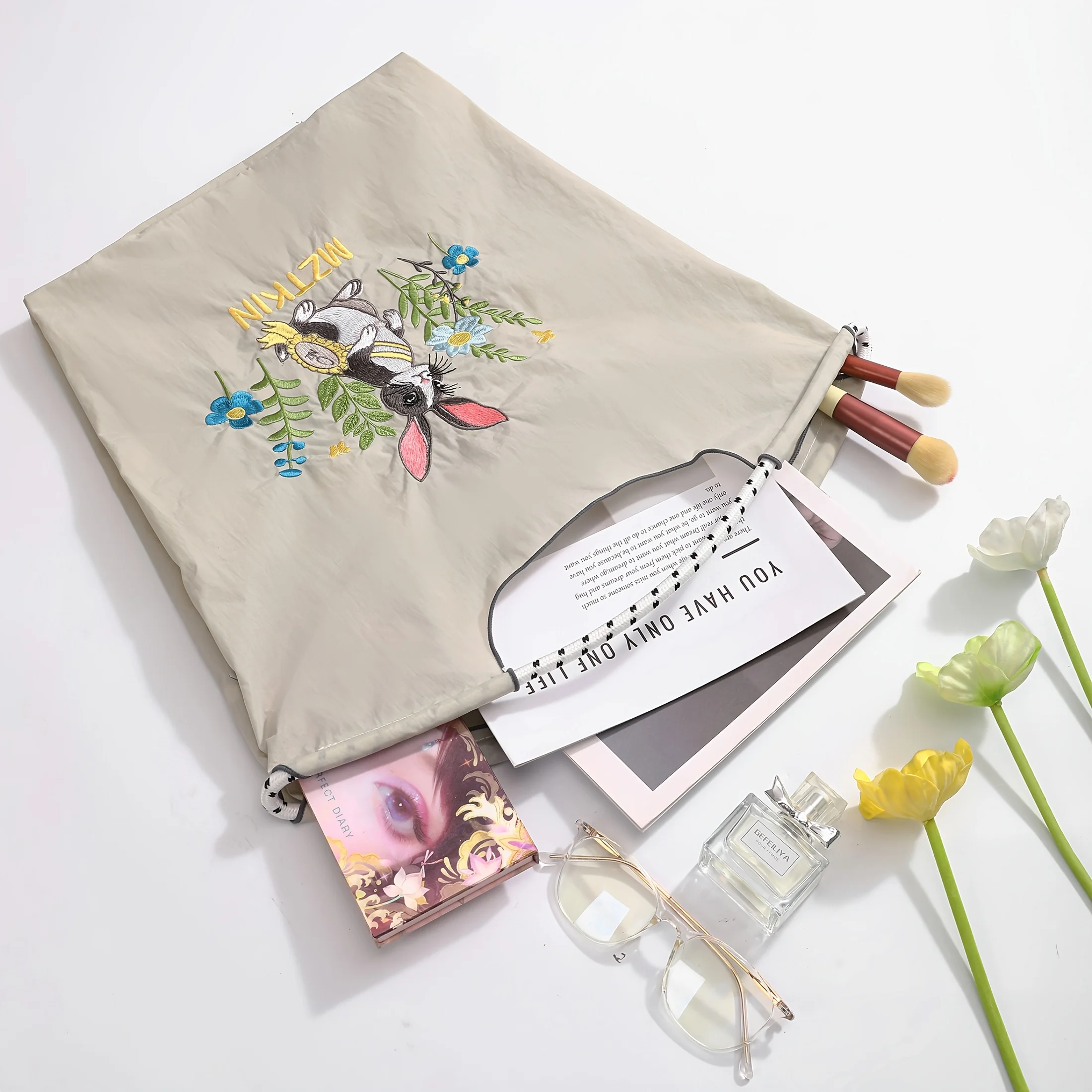 (folding design): add a storage elastic band at the bag opening for easy carrying as a spare bag or reusable grocery shopping bag