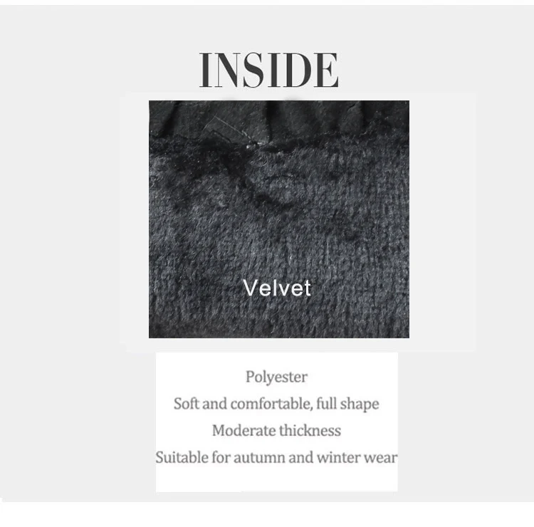 3. The inner lining is black velvet, which is comfortable to wear in winter and keeps cold and warm.