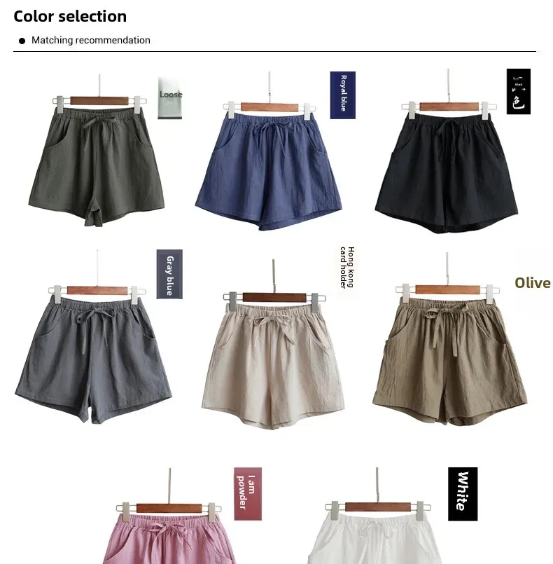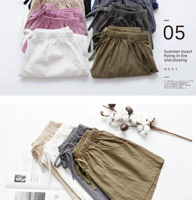 New Loose-Fit Cotton Linen Shorts Women's Summer Slimming Elastic Waist Casual Outerwear Korean Style Women's Hot Pants Wholesal
