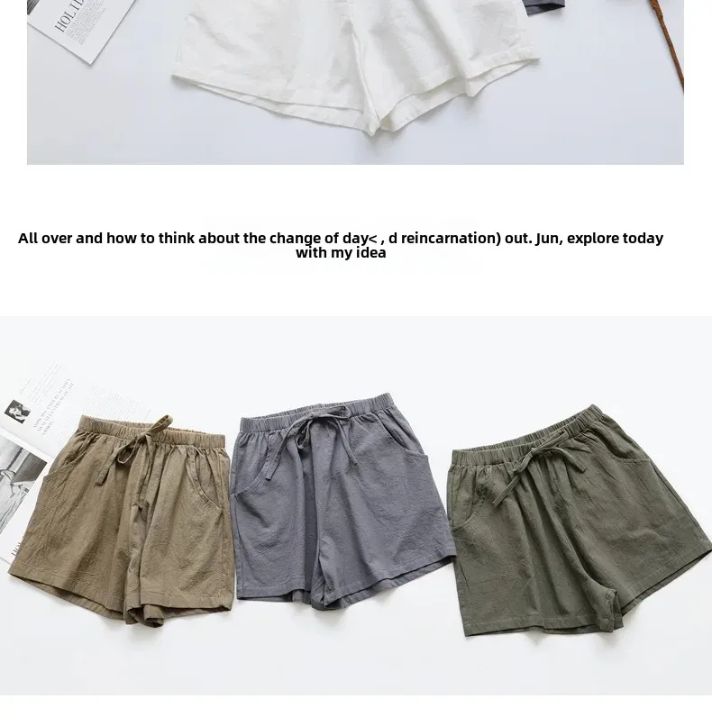 New Loose-Fit Cotton Linen Shorts Women’s Summer Slimming Elastic Waist Casual Outerwear Korean