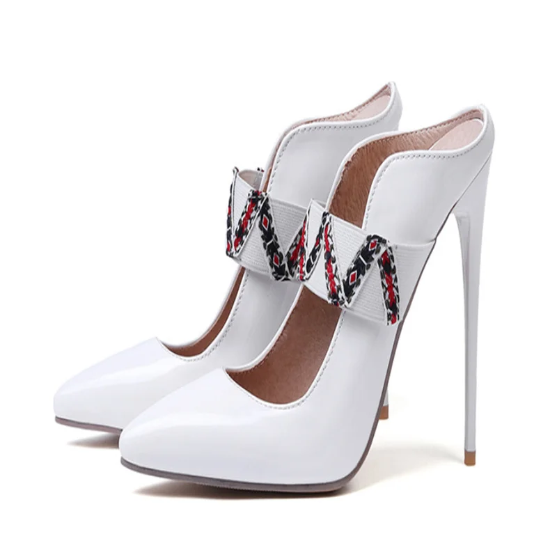 New Luxury Naked Pumps Women High Heels12cm Thin Heels Pointed Toe Patent Leather Woman Shoes Professional Shoes Size 47