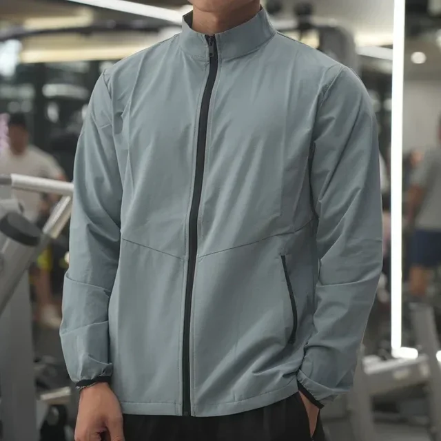 New Men Fitness Running Jacket Spring and Autumn Gym Outerwear Loose Casual Jogging Outdoor Stand-up