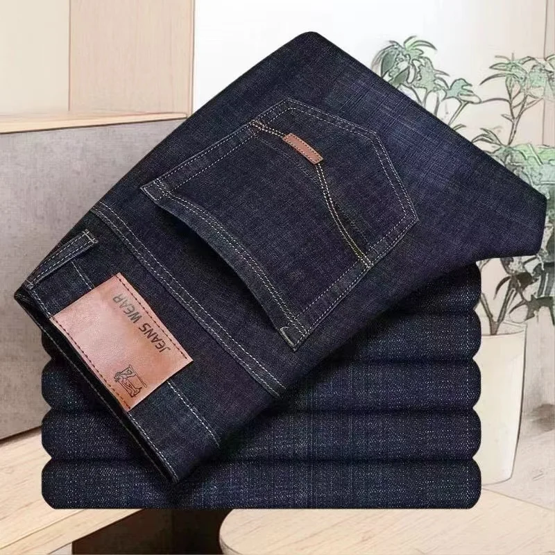 New Men Light Luxury Stretch Slim Fit Pants Comfortable Soft Business Fashion Straight Casual Denim Trousers