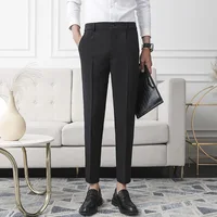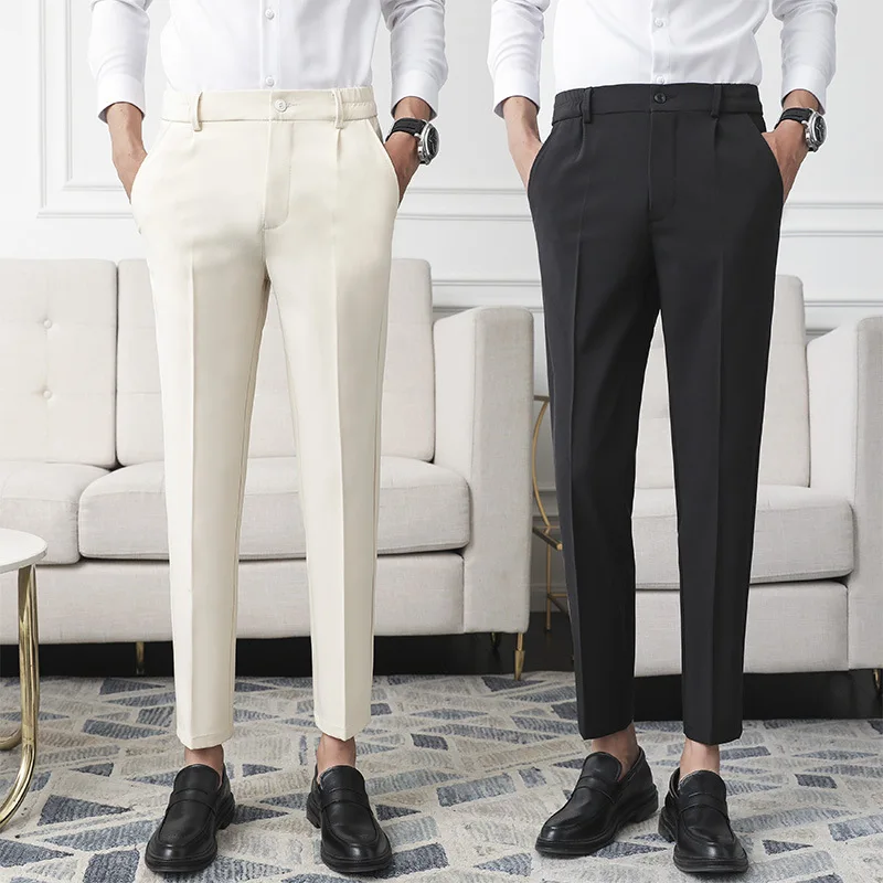 Spring Men's Slim Casual Pants Business Straight Twill Cotton Elastic Trousers Brand Fashion Korean Clothing Coffee Black Gray