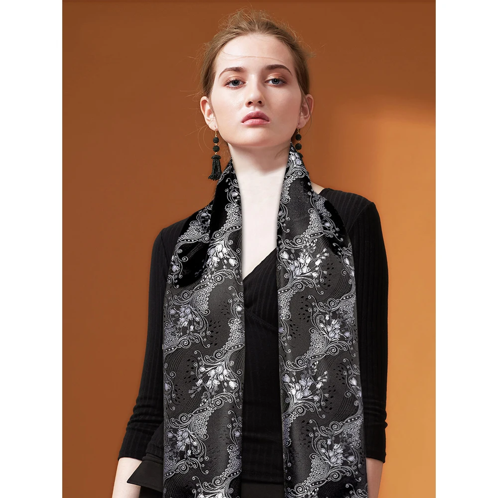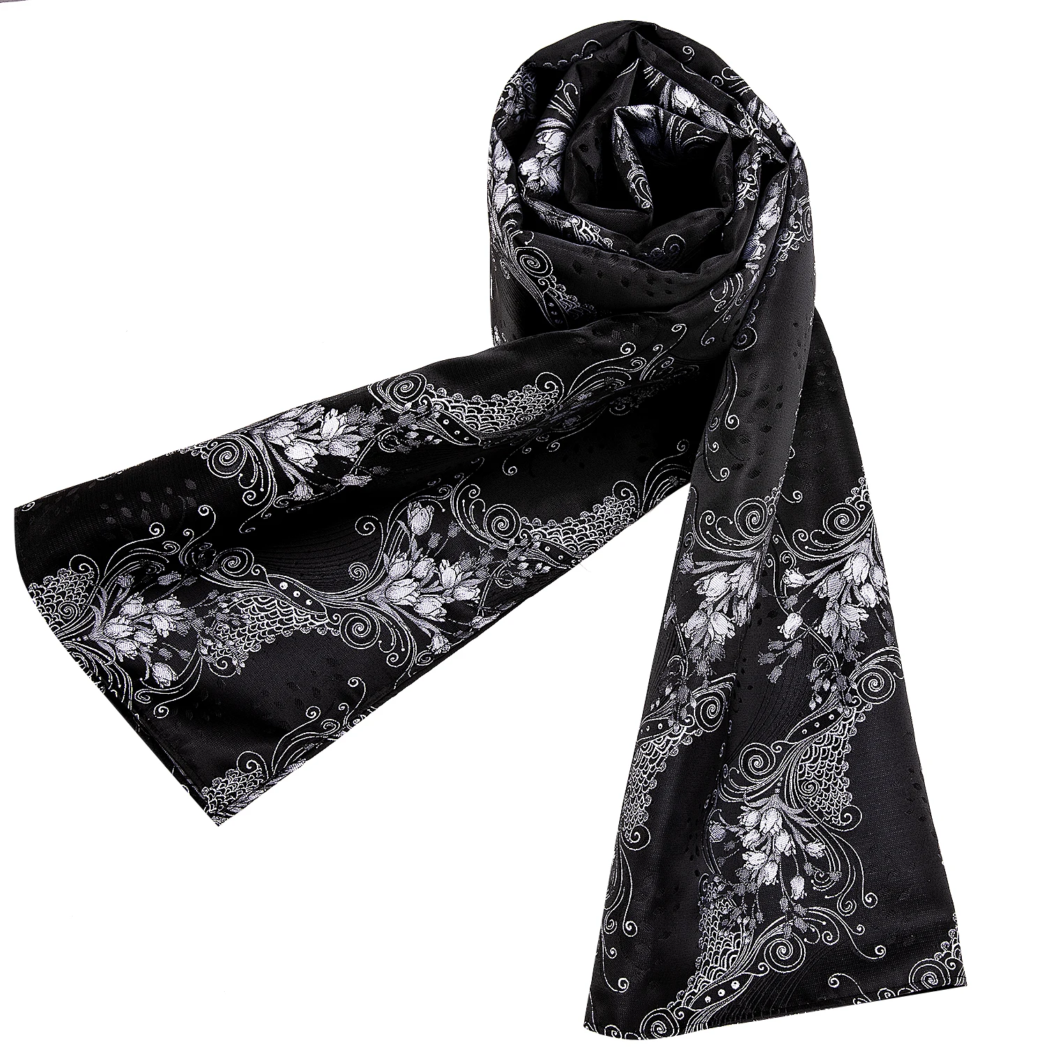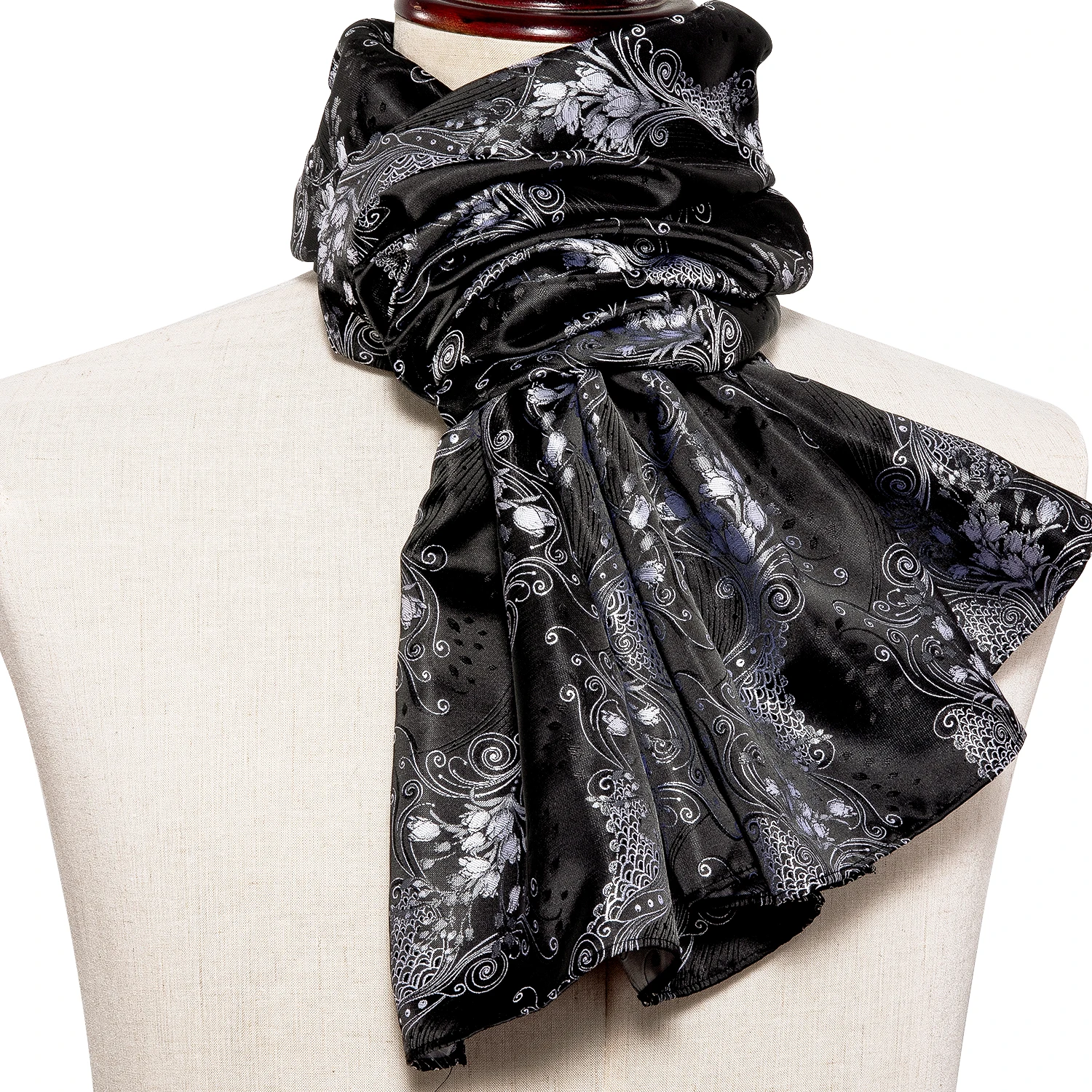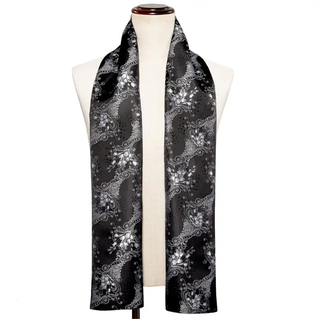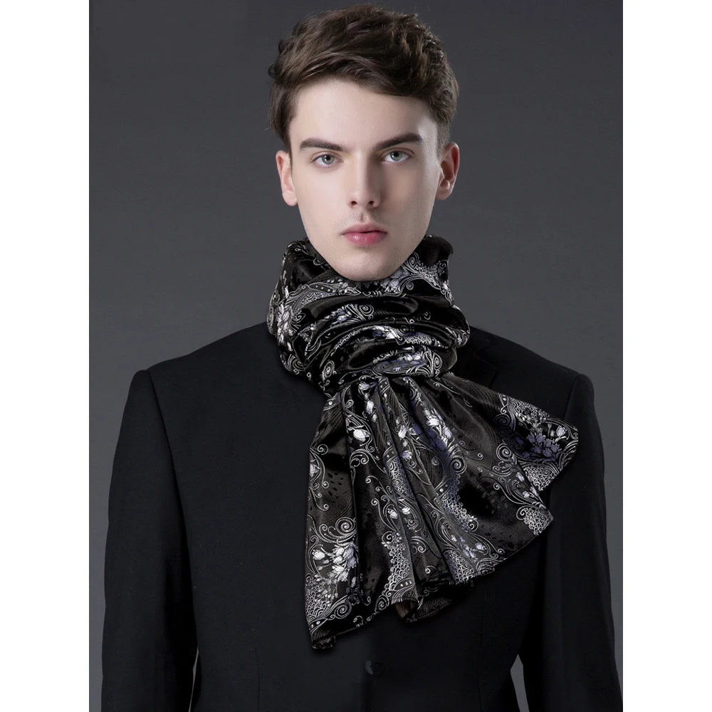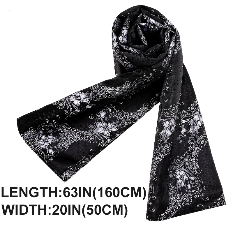 New Men Scarf Black Long Jacquard Paisley 100% Silk Scarf Autumn Winter Casual Retro Business Suit Shirt Shawl Scarf Barry.Wang