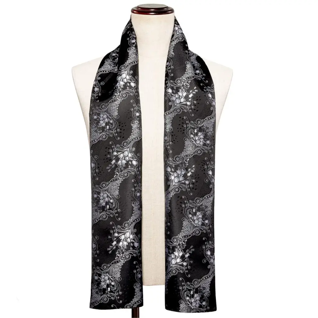 New Men Scarf Black Long Jacquard Paisley 100% Silk Scarf Autumn Winter Casual Retro Business Suit Shirt