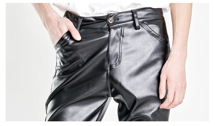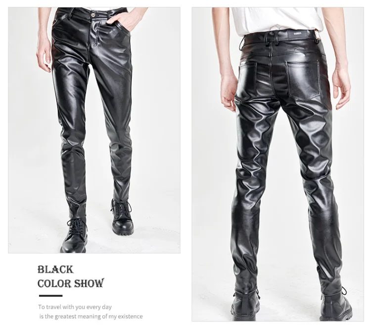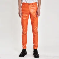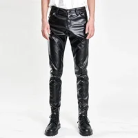 Punk Casual Pu Leather Pants Solid Color Men'S Clothing Tight Elastic Low Waist Boy Pant s Trousers Leather Pants Men's locomoti