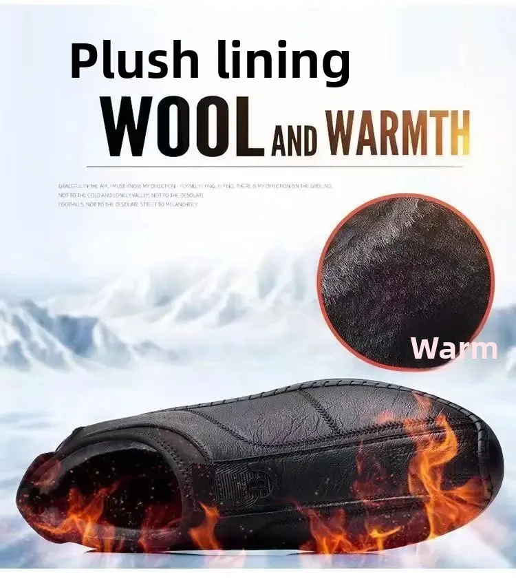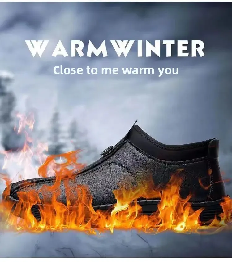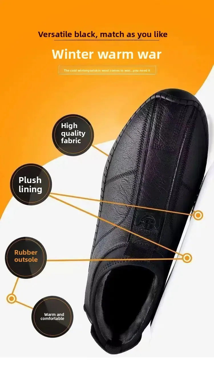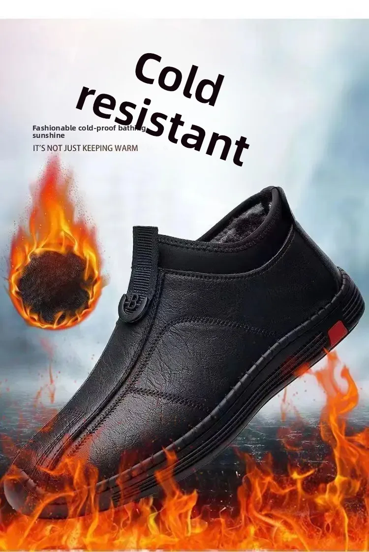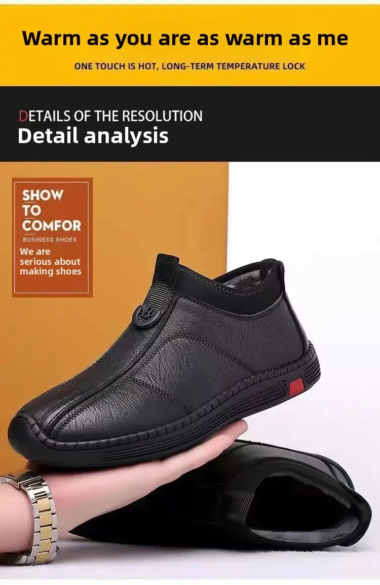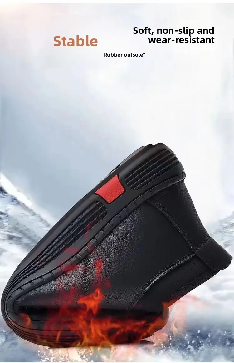 New Men’s Casual Cotton Lined High Top Soft Bottom Leather Shoes Breathable Winter Comfortable
