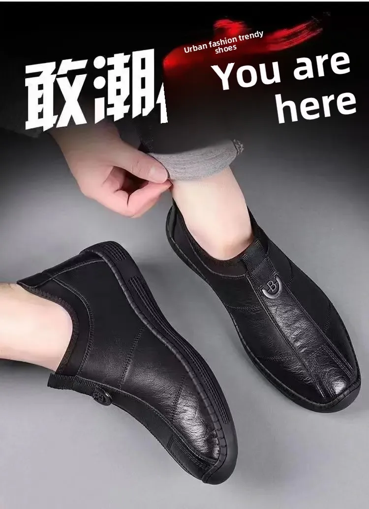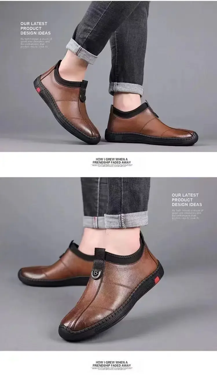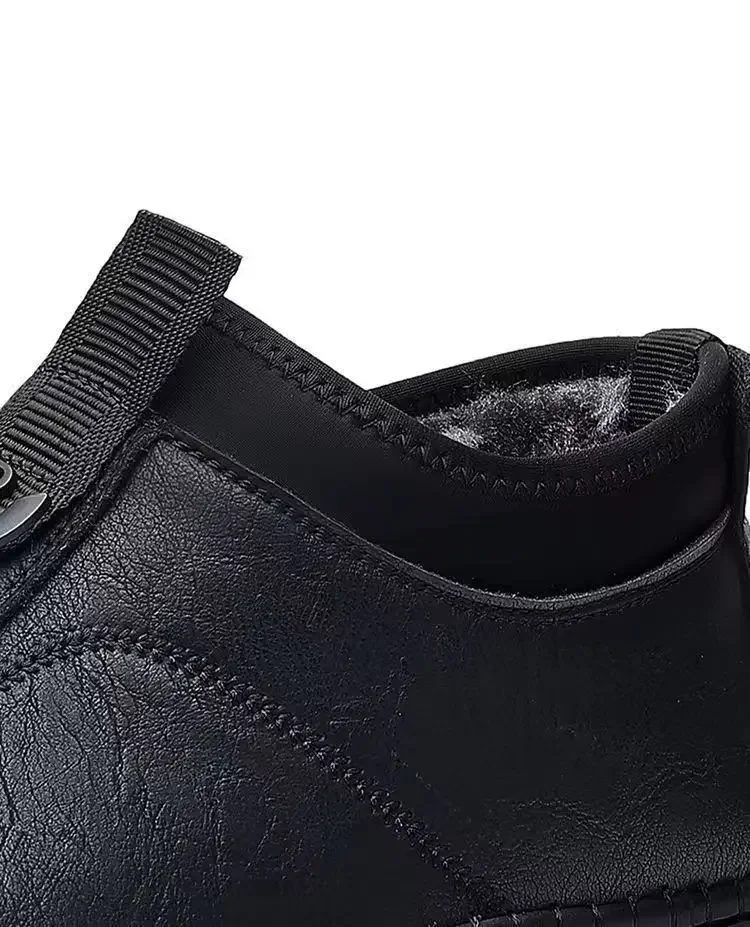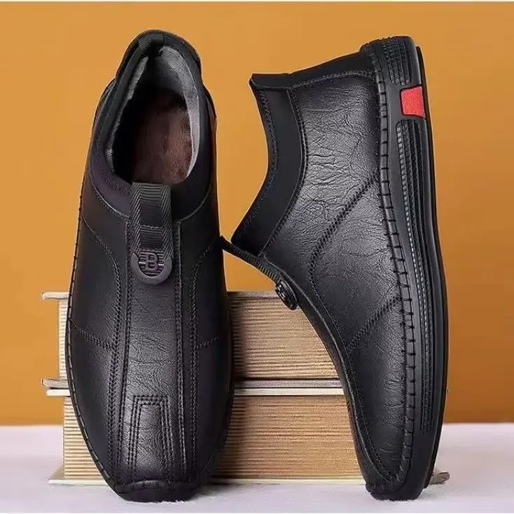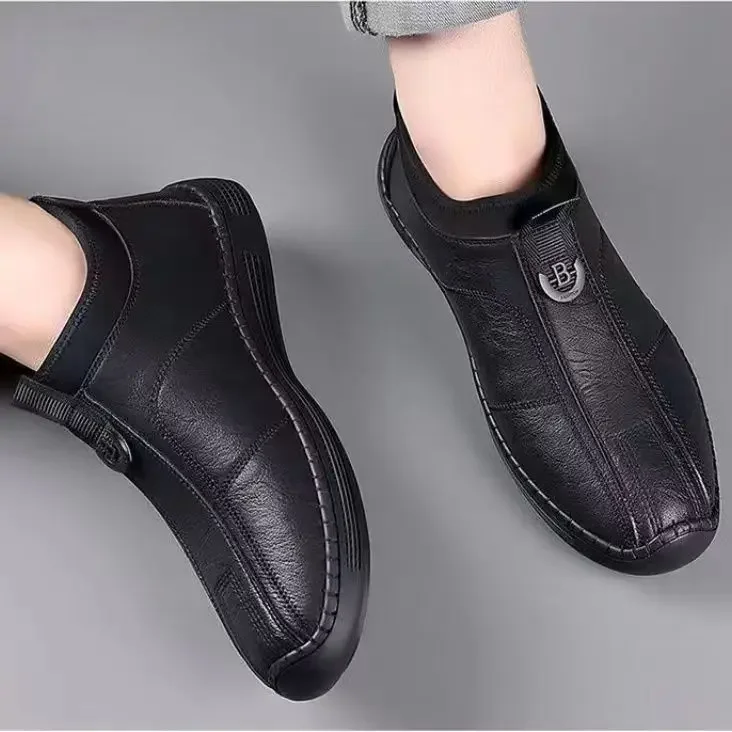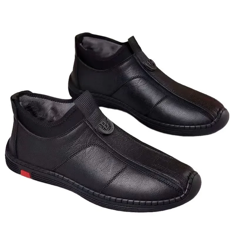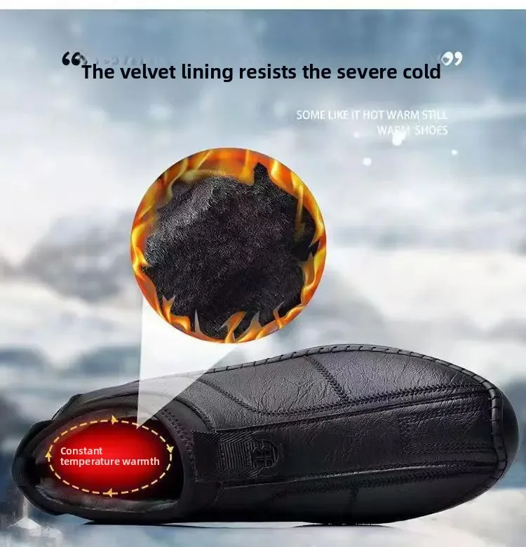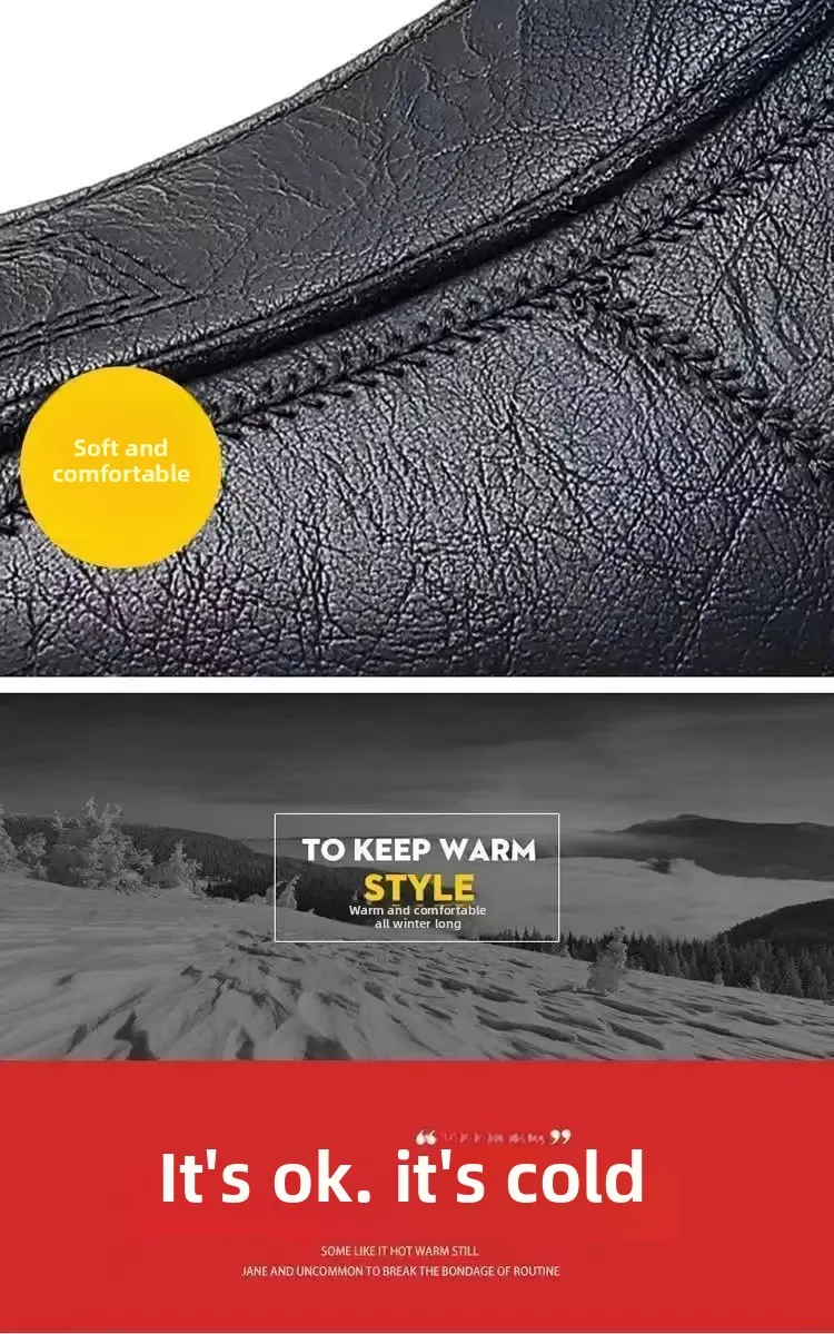 New Men’s Casual Cotton Lined High Top Soft Bottom Leather Shoes Breathable Winter Comfortable