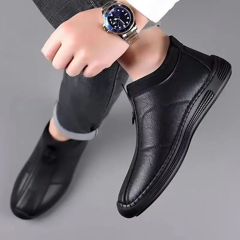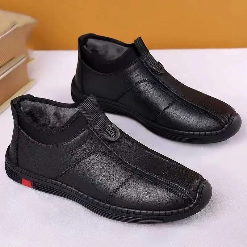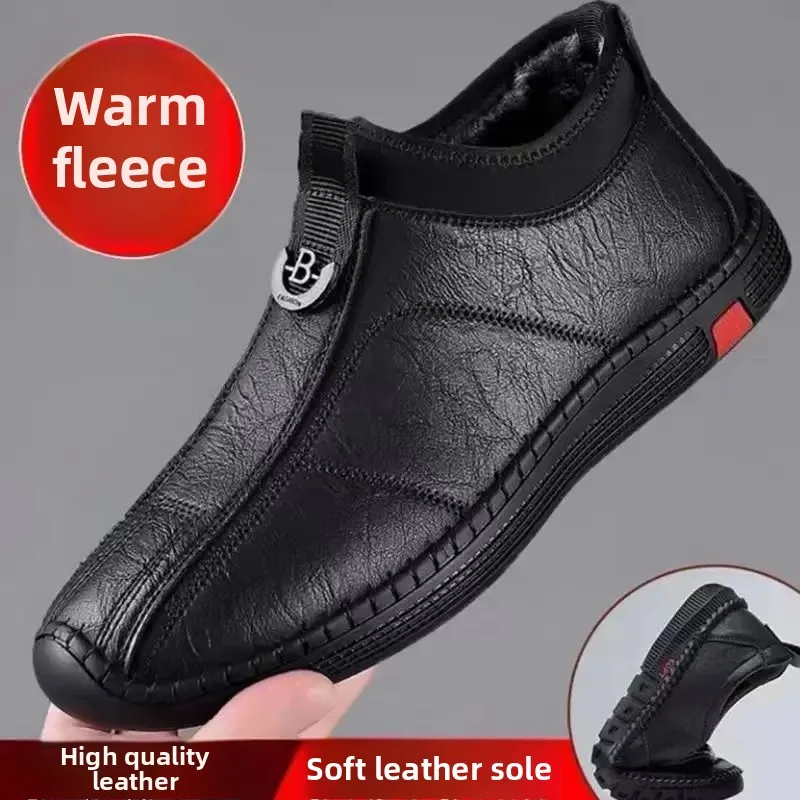 New Men's Casual Cotton Lined High Top Soft Bottom Leather Shoes Breathable Winter Comfortable Fashionable Dad Shoes
