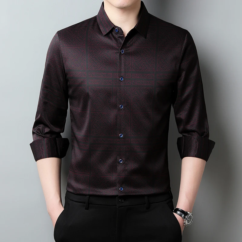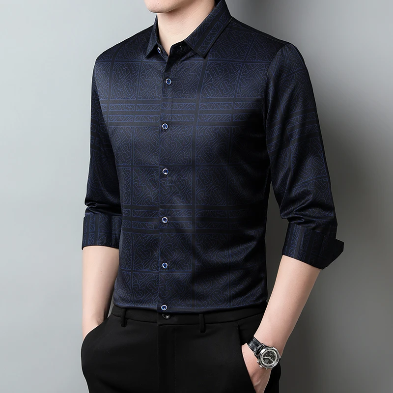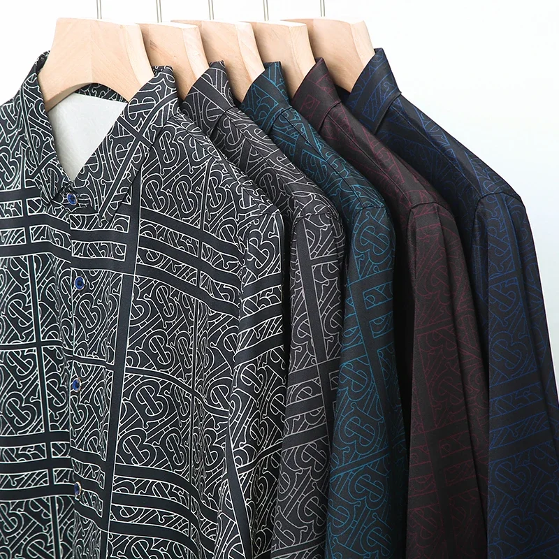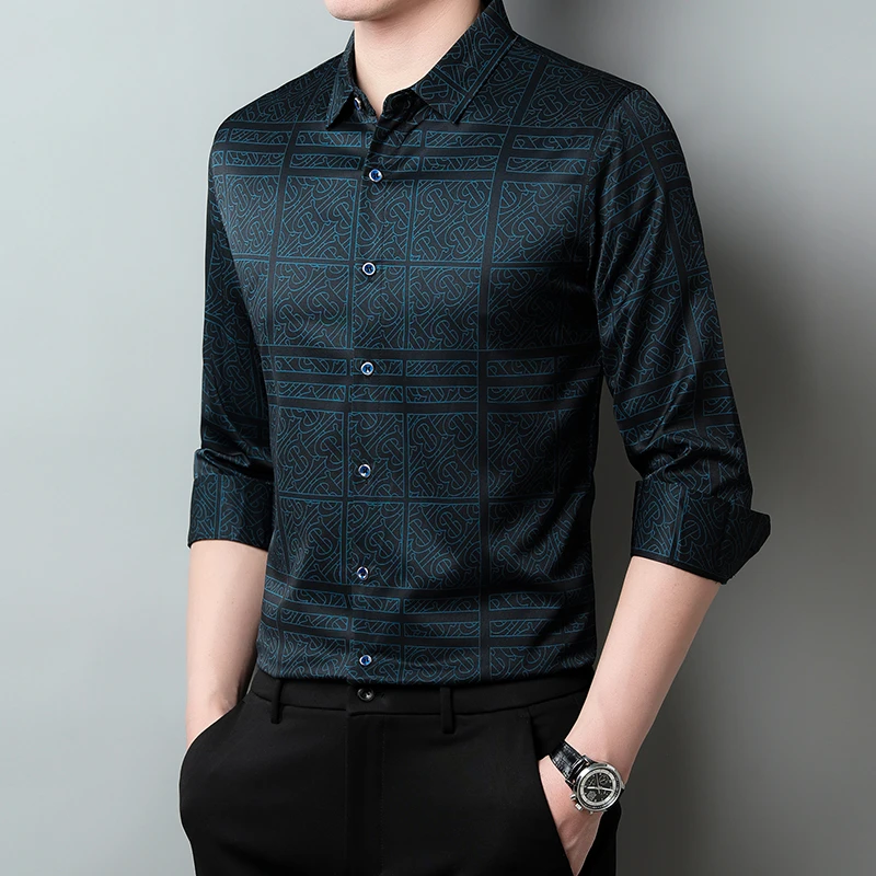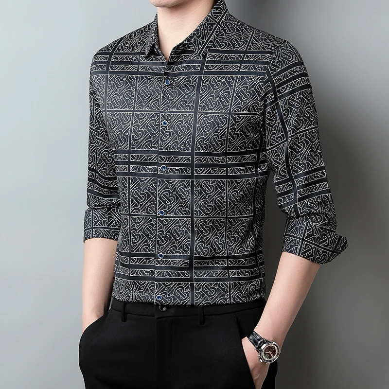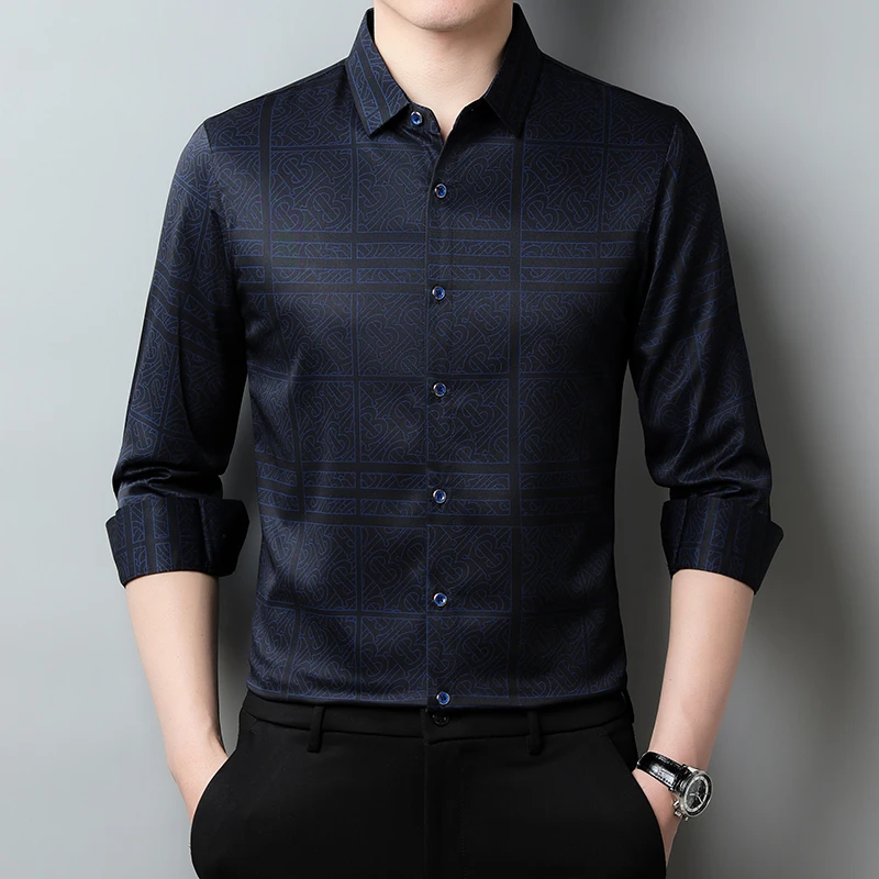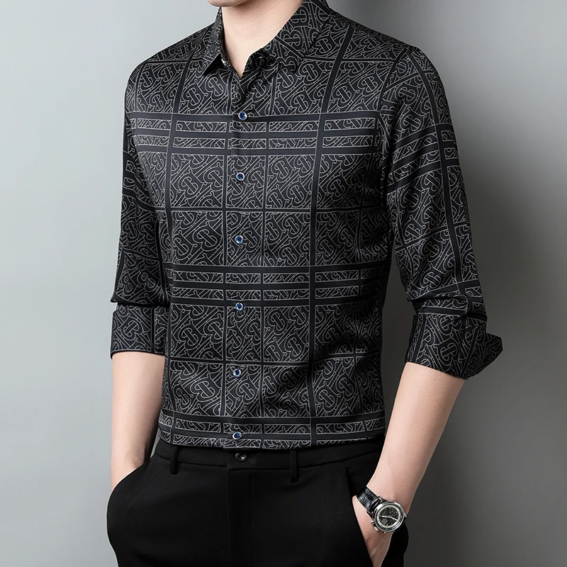 New Men's Casual Printed Long Sleeved Lapel Shirt for Spring and Autumn Fashion Comfortable Wrinkle Free Top Without Ironing