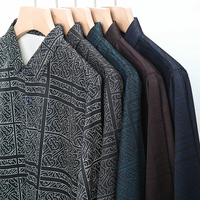 New Men’s Casual Printed Long Sleeved Lapel Shirt for Spring and Autumn Fashion Comfortable Wrinkle