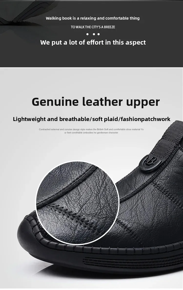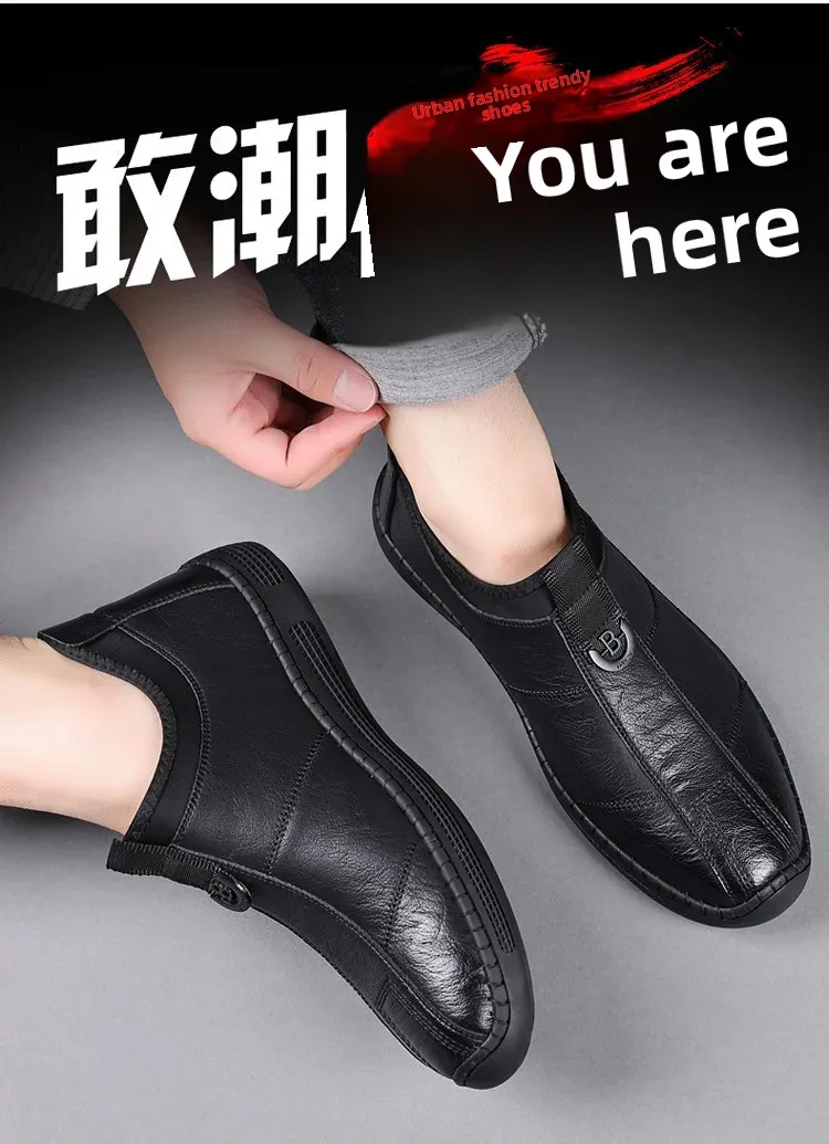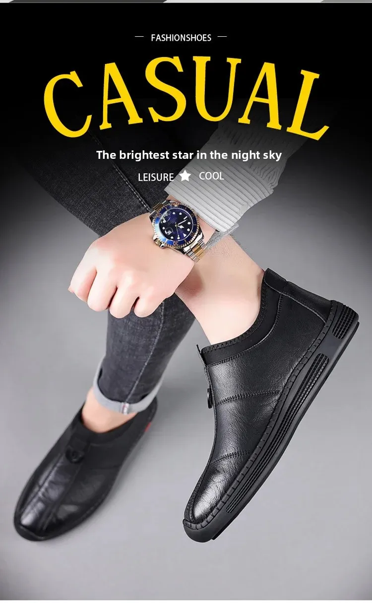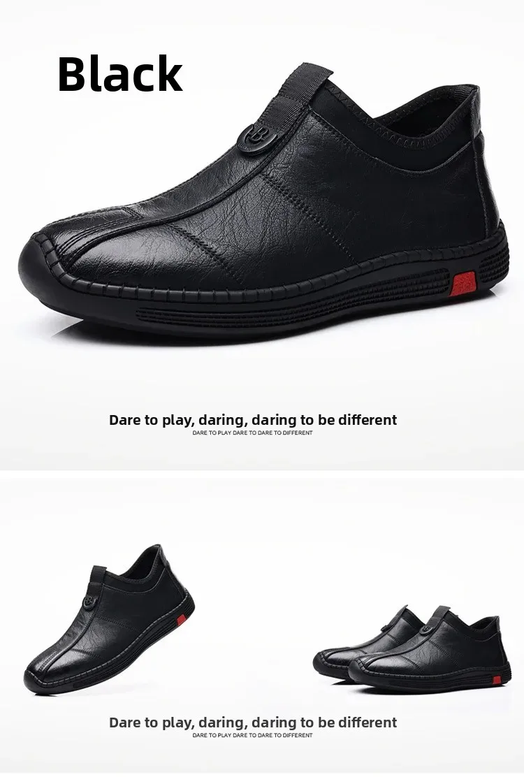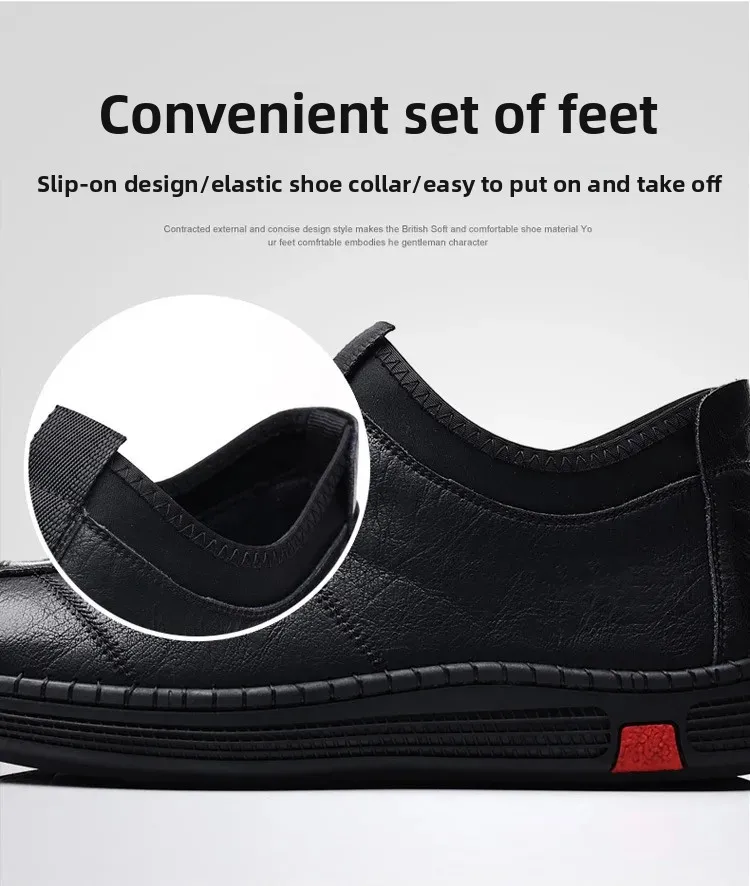New Men's Casual Slip-On Leather Shoes Lightweight Soft Low Waterproof Hotel Work Shoes Easy to Wear Breathable Leather Shoes