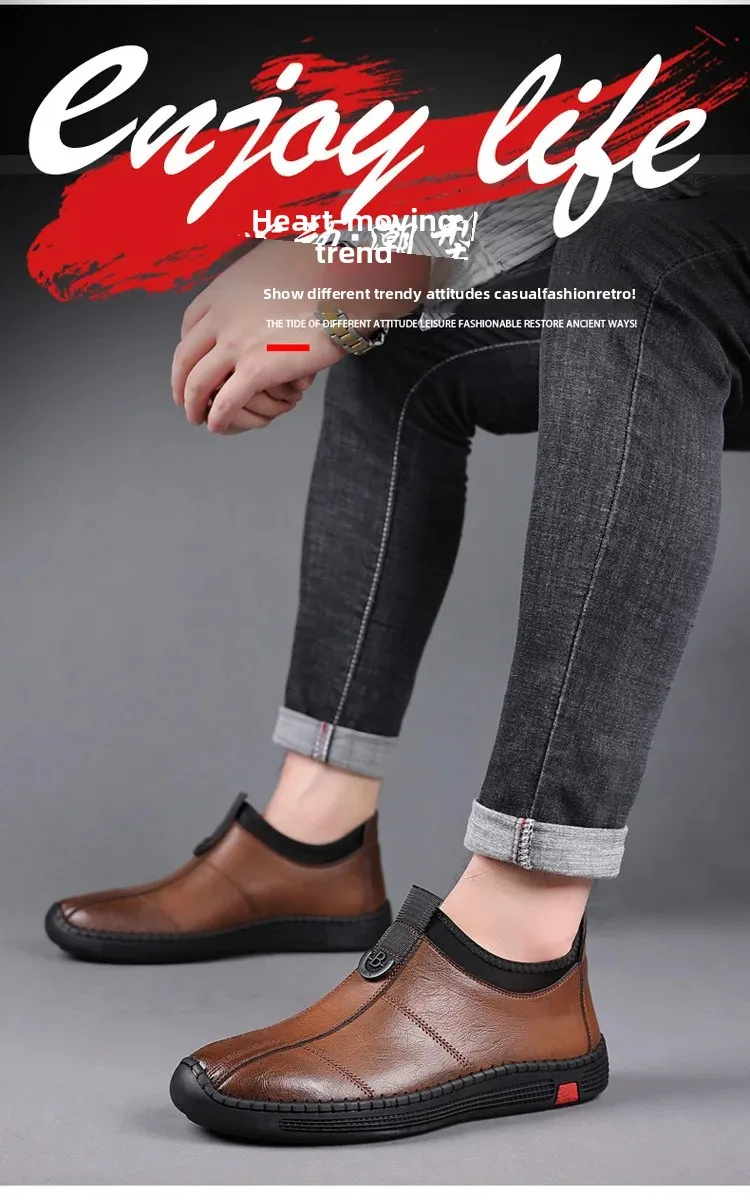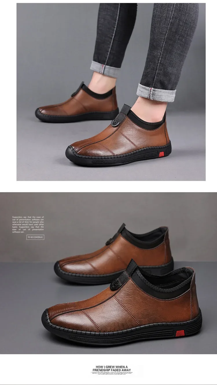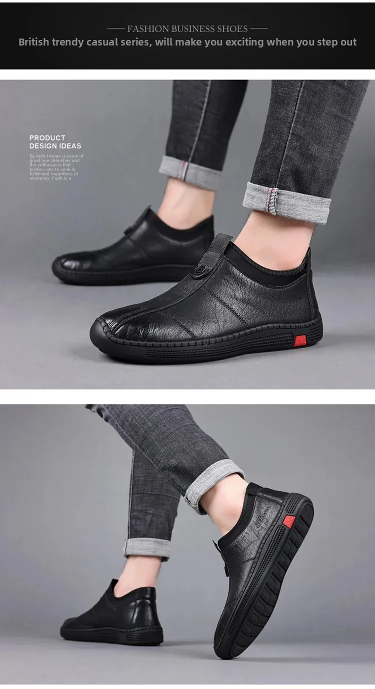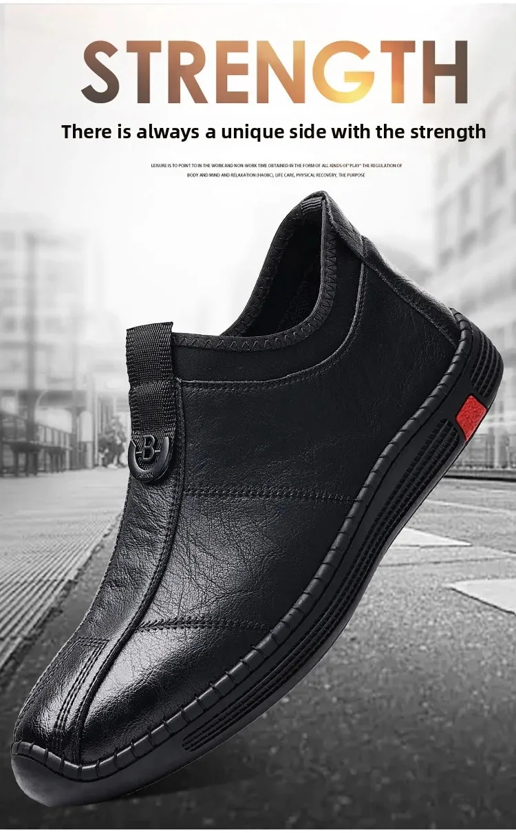 New Men's Casual Slip-On Leather Shoes Lightweight Soft Low Waterproof Hotel Work Shoes Easy to Wear Breathable Leather Shoes