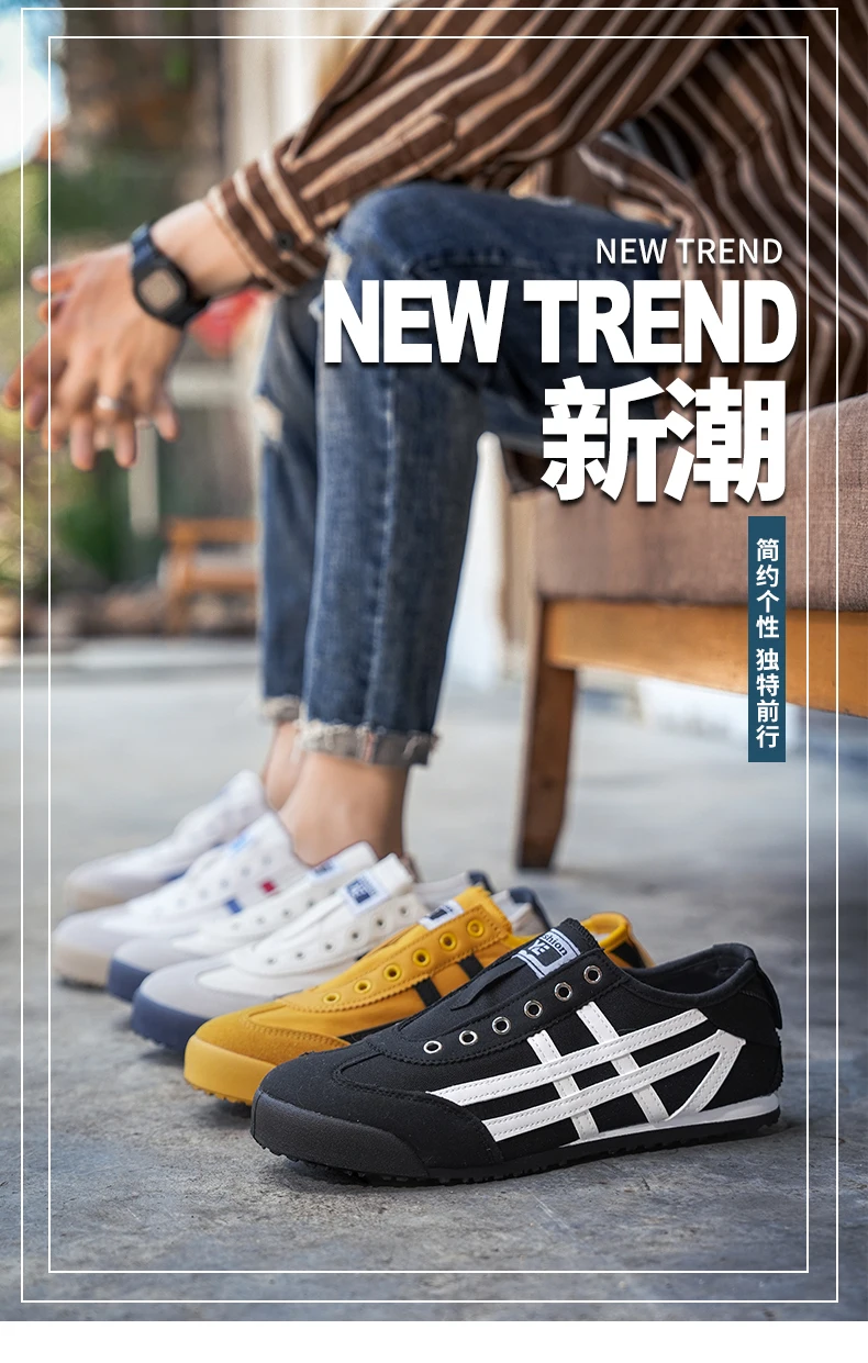 LuTai Unisex Canvas Slip-On Shoes Flat Rubber Sole Breathable Cotton Lining Anti-Odor Beijing Style Footwear for Men And Women