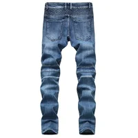 New Men's Patchwork Vintage Biker Jeans Hip Hop Slim Straight Elastic Cycling Denim Pants Male Fashion Streetwear Trouser