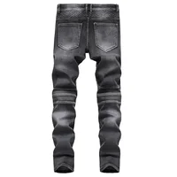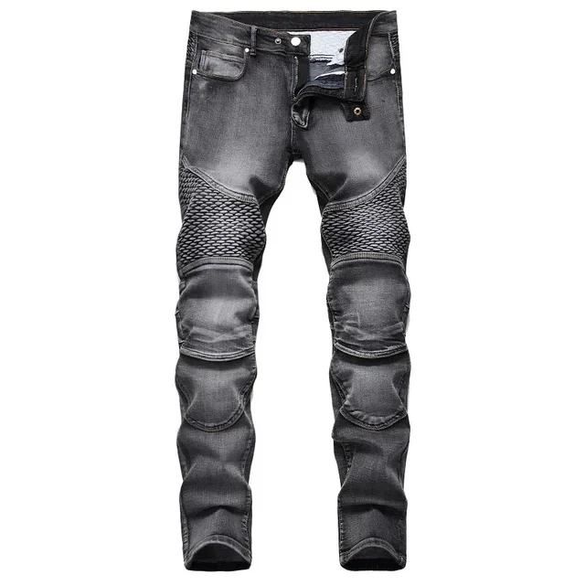 New Men’s Patchwork Vintage Biker Jeans Hip Hop Slim Straight Elastic Cycling Denim Pants Male