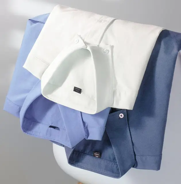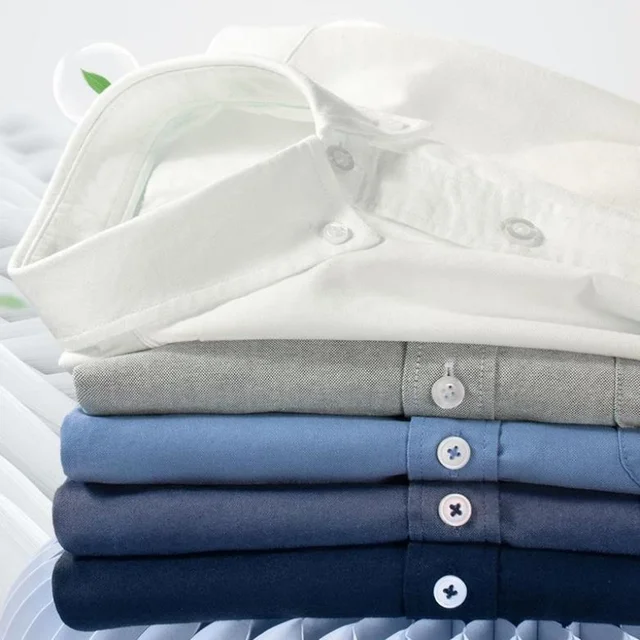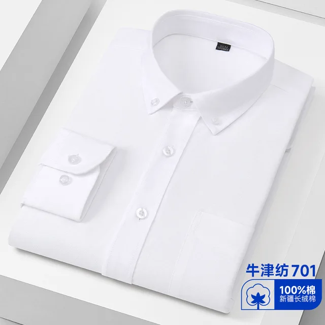 New Men's Social Shirt Long Sleeve 100%Pure Cotton Oxford Soft Buttoned Formal Male Clothes Oversized Solid Color Shirt S-7XL