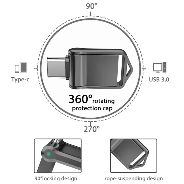 Conectores duales: Diseñados con un puerto USB 3.0 y un puerto tipo C que se aplican para compartir datos entre su teléfono móvil, tableta y computadora portátil.(Nota: asegúrese de que sus dispositivos móviles cuenten la función OTG antes de comprarlos)