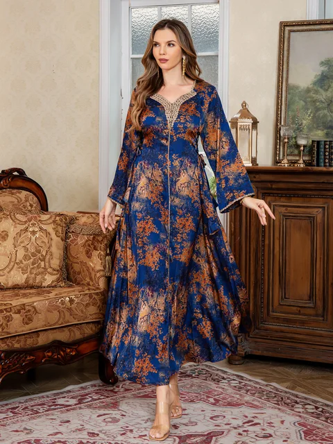 New Muslim Print Robe Women Perfect for Everyday Wear Elegant Fashion Middle Eastern dress Satin Abaya