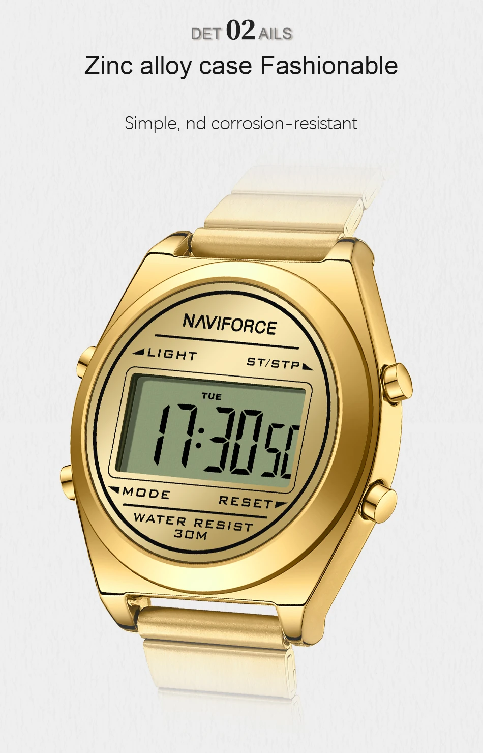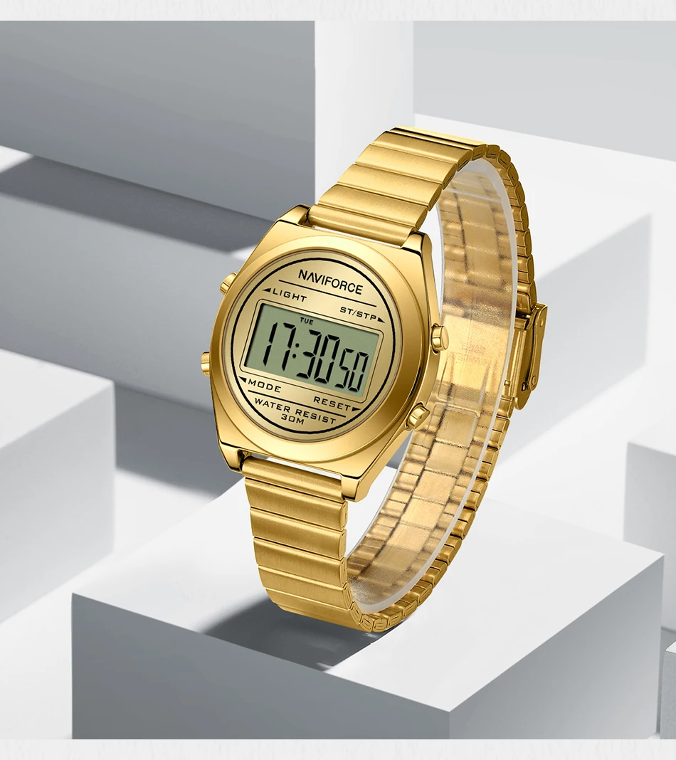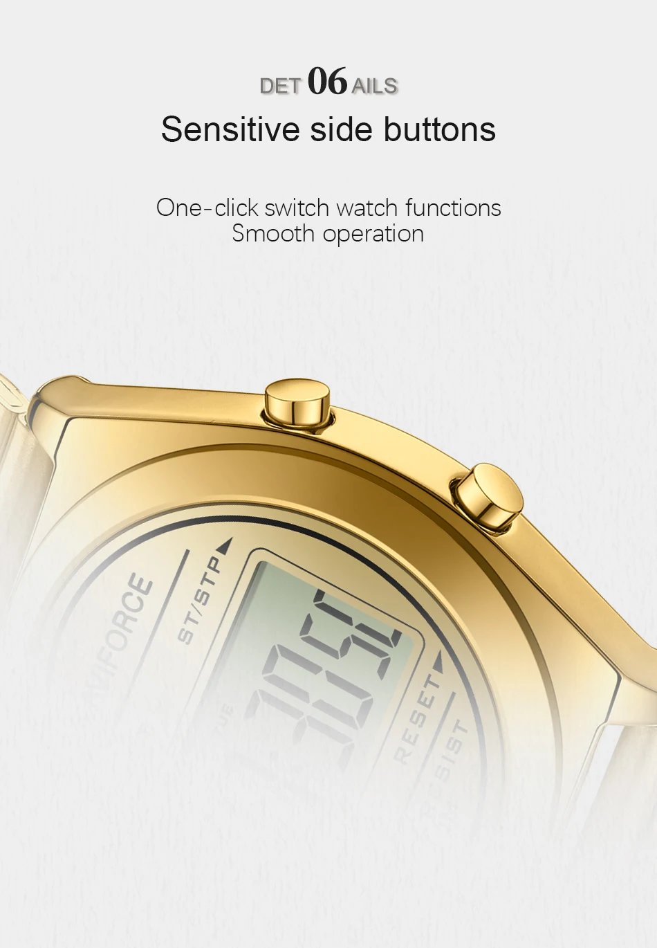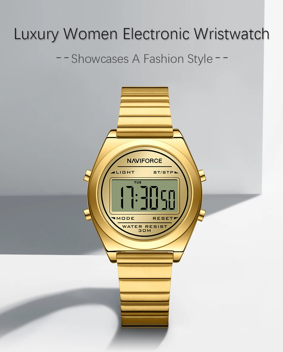 New NAVIFORCE Women‘s Stainless Steel Strap Watch Date Display Hardened Glass Movement Lady Watches Luxury Digital Clock Gifts