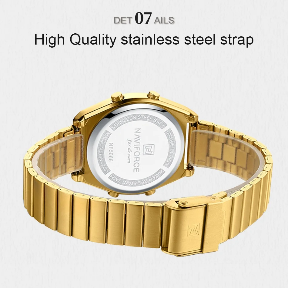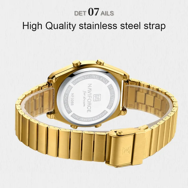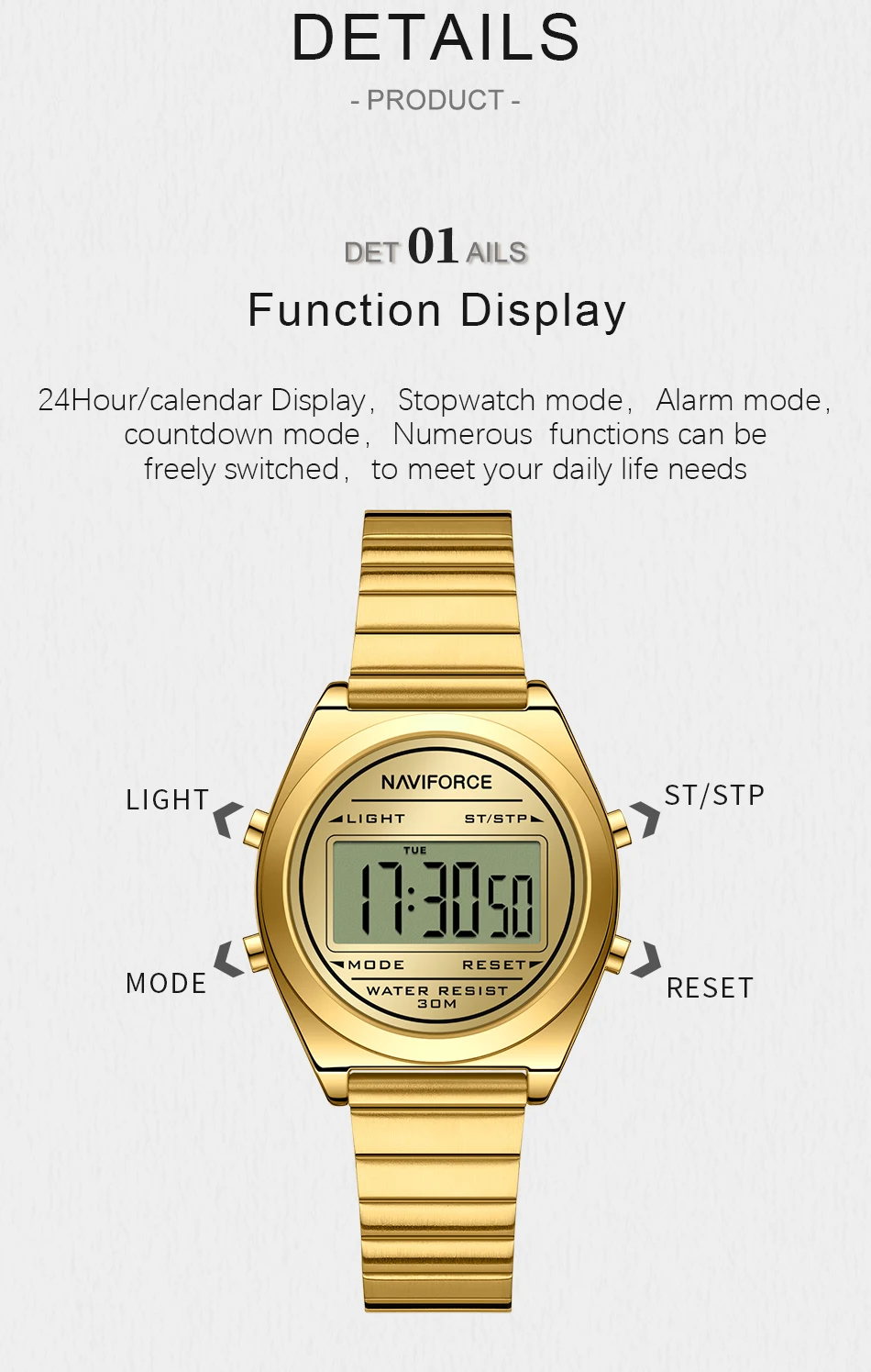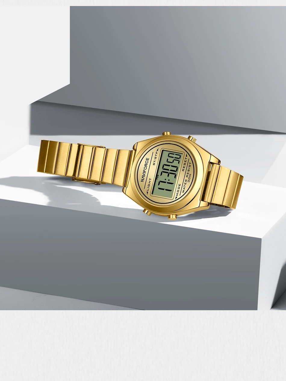 New NAVIFORCE Women‘s Stainless Steel Strap Watch Date Display Hardened Glass Movement Lady Watches Luxury Digital Clock Gifts