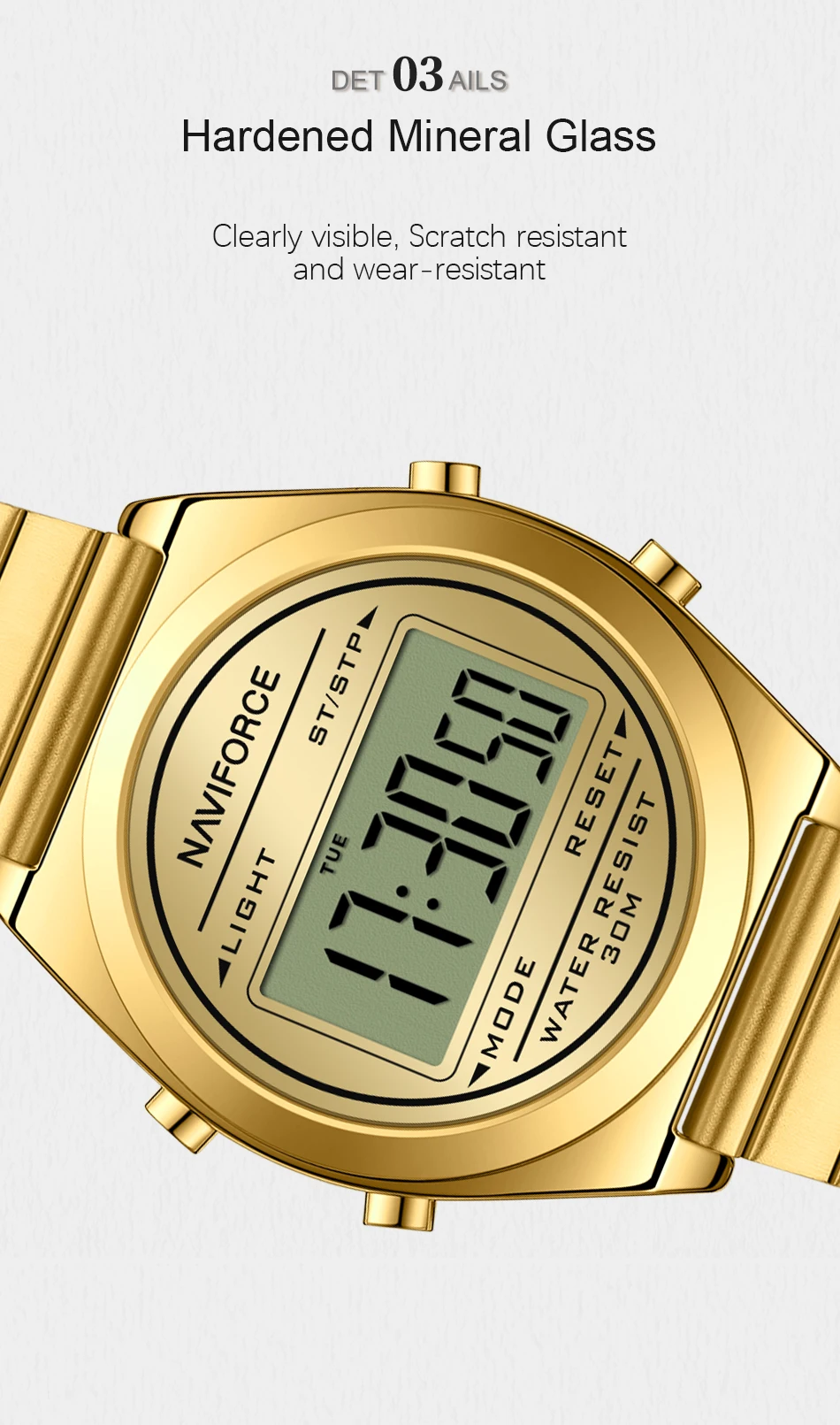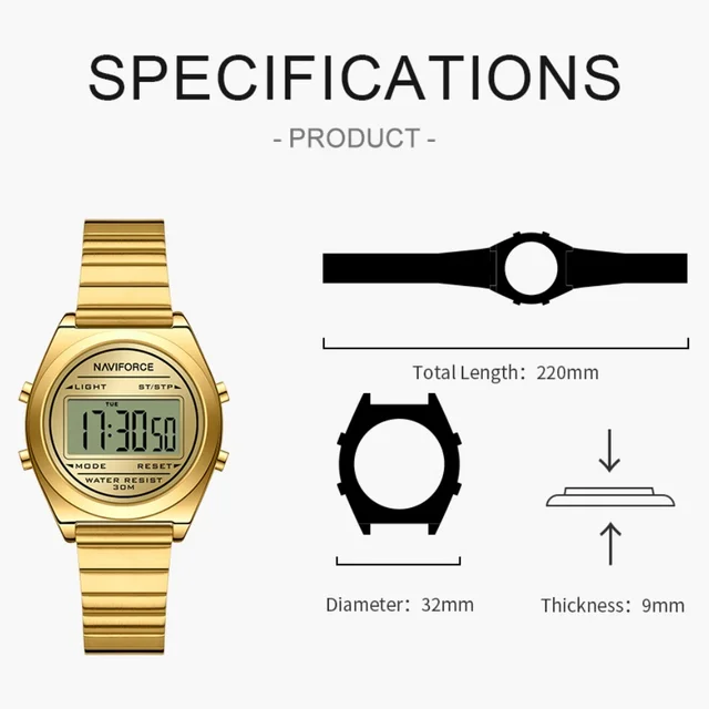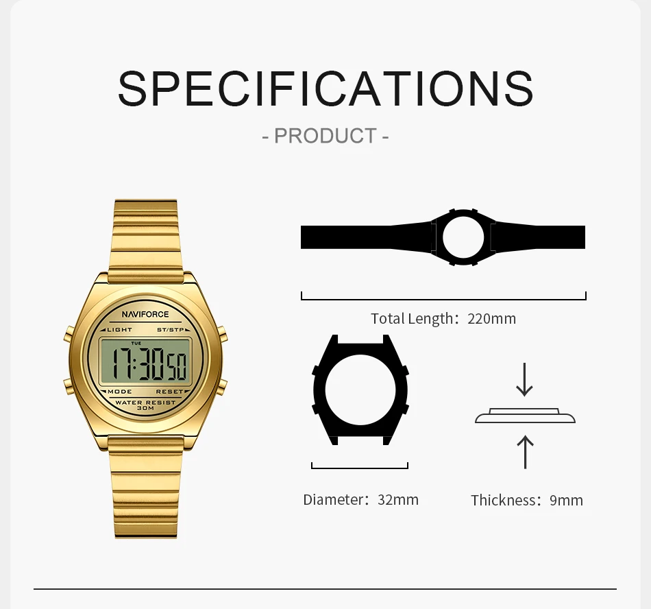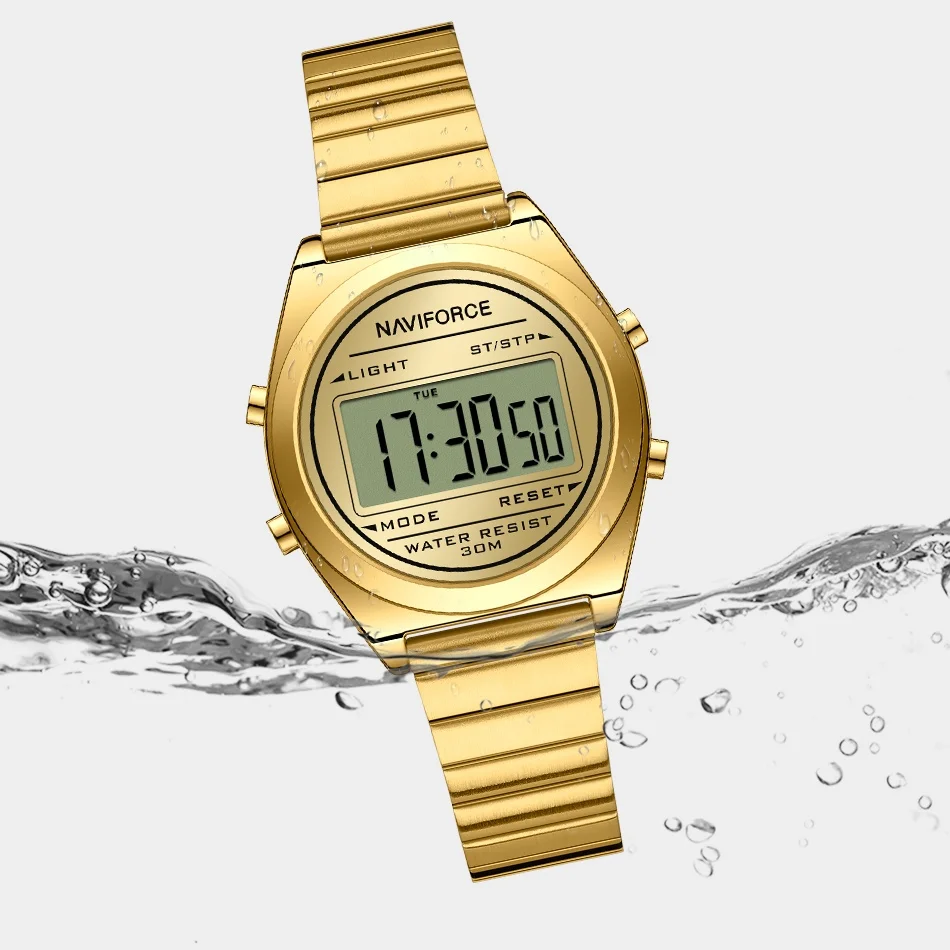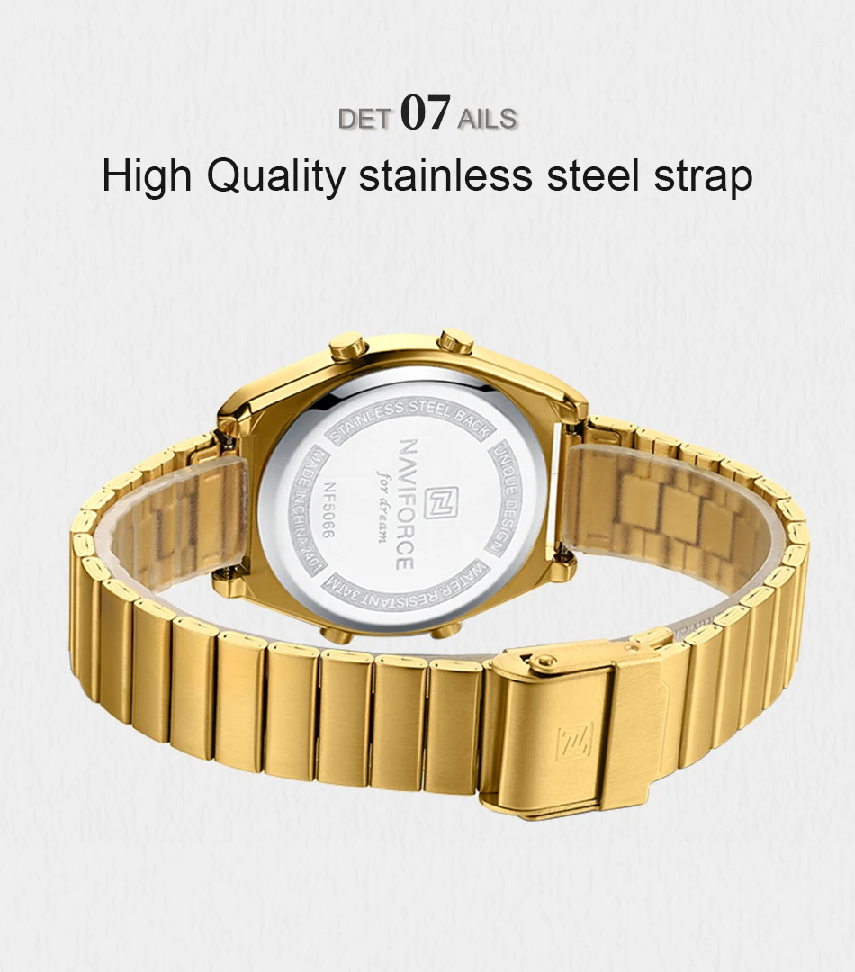 New NAVIFORCE Women‘s Stainless Steel Strap Watch Date Display Hardened Glass Movement Lady Watches Luxury Digital Clock Gifts