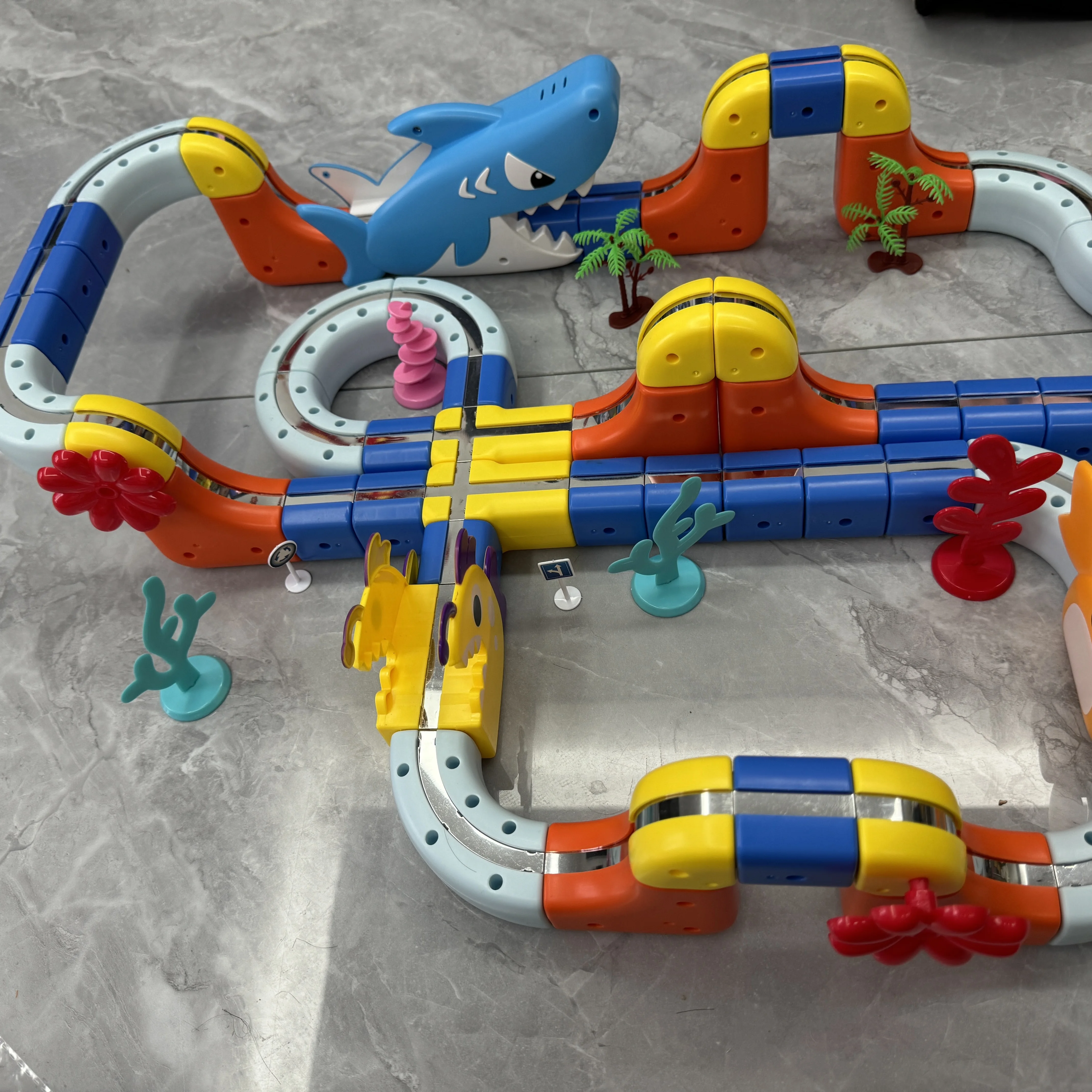 New Ocean Magnetic Electric Track Assembled Pull-Back Racing Car Gravity Slide Educational Child Toys
