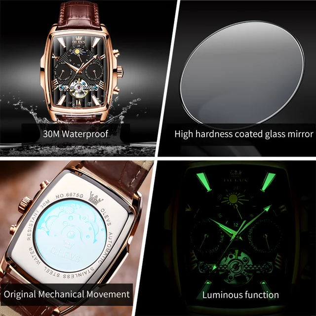OLEVS 6638 Men Watch Brand Mechanical Movement Automatic Watch Men Luxury Waterproof Calendar Timing Code Original Men Watch