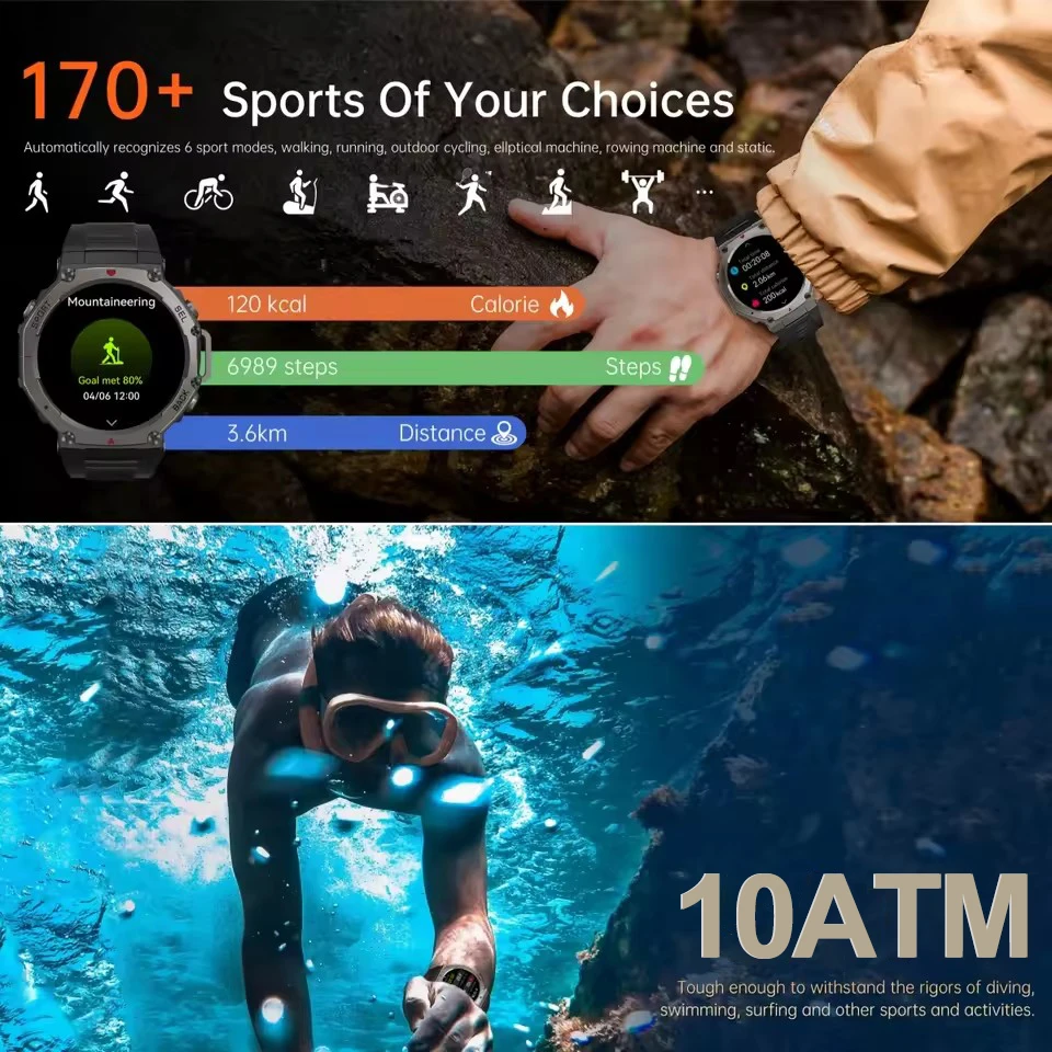 New Original Military GPS Compass Smart Watch T-Rex 3 10ATM/IP69K Waterproof Swim Bracelet 170+ Sports