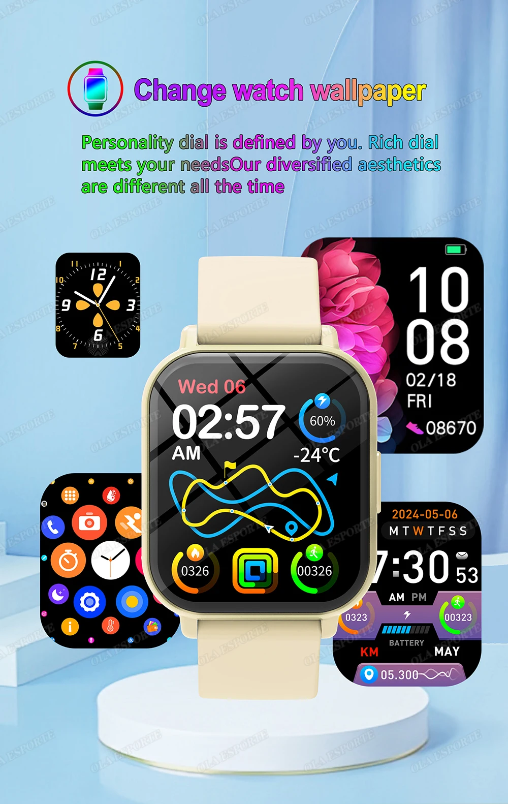 • Various Watch Faces: Choose from a variety of watch faces to match your style and mood.
