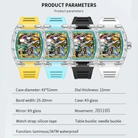 2022 New Men's Automatic Mechanical Watch ONOLA Fashion Unique Luxury Diamond Inlaid Design Waterproof Silicon Tape Watches Men